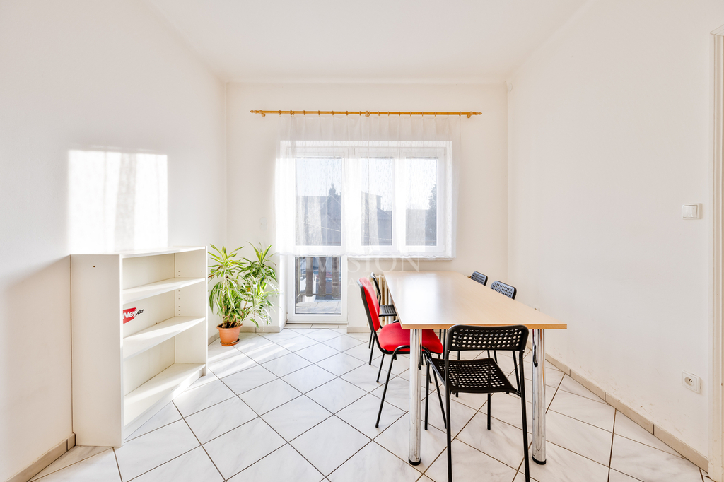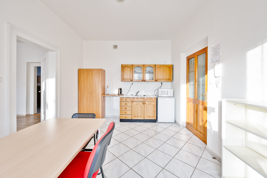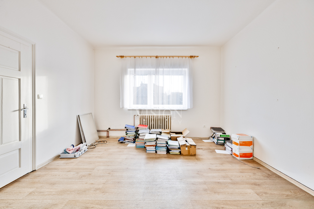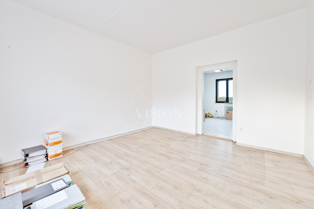 V 1. nadzemním podlaží je kancelářský prostor se čtyřmi samostatnými místnostmi a sociálním zázemím. Prostory jsou světlé, dobře dispozičně řešené a vhodné pro kanceláře, služby nebo kombinaci s jiným podnikáním. I zde jsou nové rozvody topení.