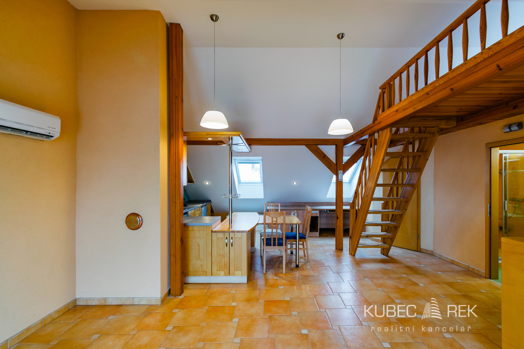 Nabízíme k pronájmu atypický byt 1+kk s podkrovním místem na spaní o celkové ploše 60 m², umístěný ve 2. patře zděného domu v ulici Třebízského v Táboře. Byt zaujme prostorným balkonem s pěkným výhledem na město a možností využívání zahrady s altánkem, ideální pro posezení a relax.