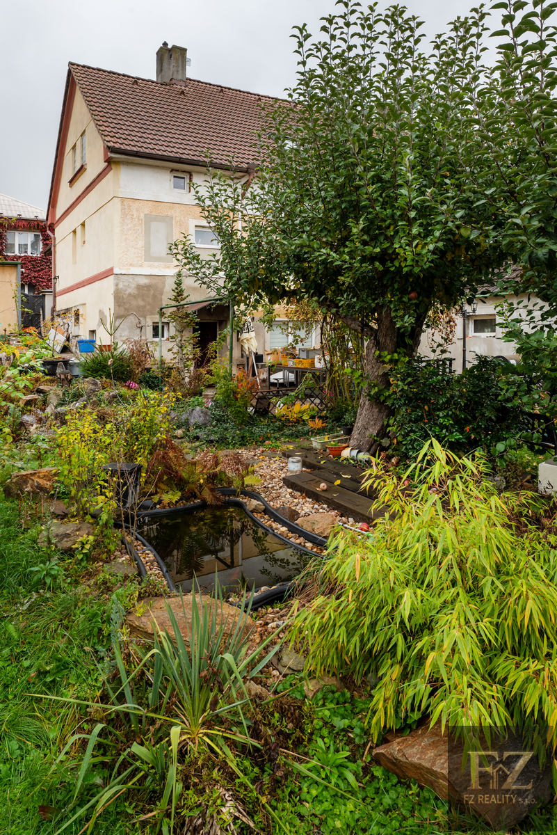K nemovitosti náleží přístavek - možno využít jako dílnu, dále zahrada s jezírkem o výměře 260 m² a garáž (21 m²) s připojenou elektřinou, bočním vstupem a novým vstupem i rovnou do zahrady.