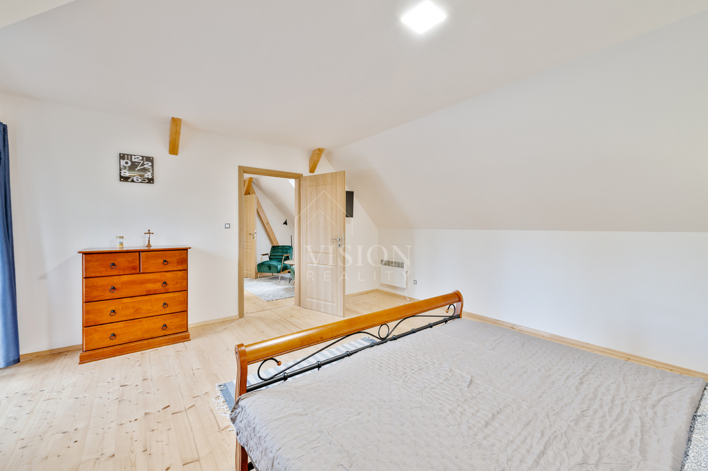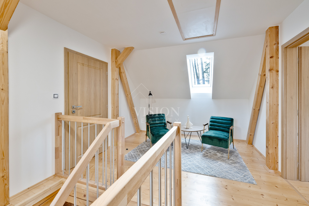 Tenhle samostatně stojící rodinný dům ve stejném areálu nabízí úplně jiný charakter bydlení – víc prostoru, víc atmosféry a víc pohody.