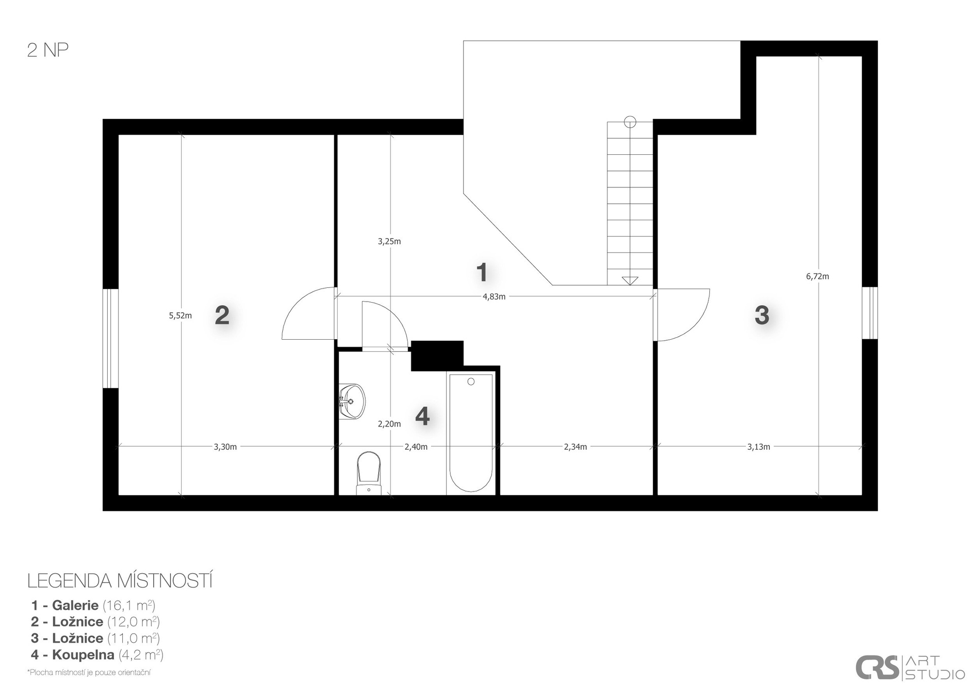 * 3 ložnice, 2 koupelny + sprcha s WC se samostatným vstupem