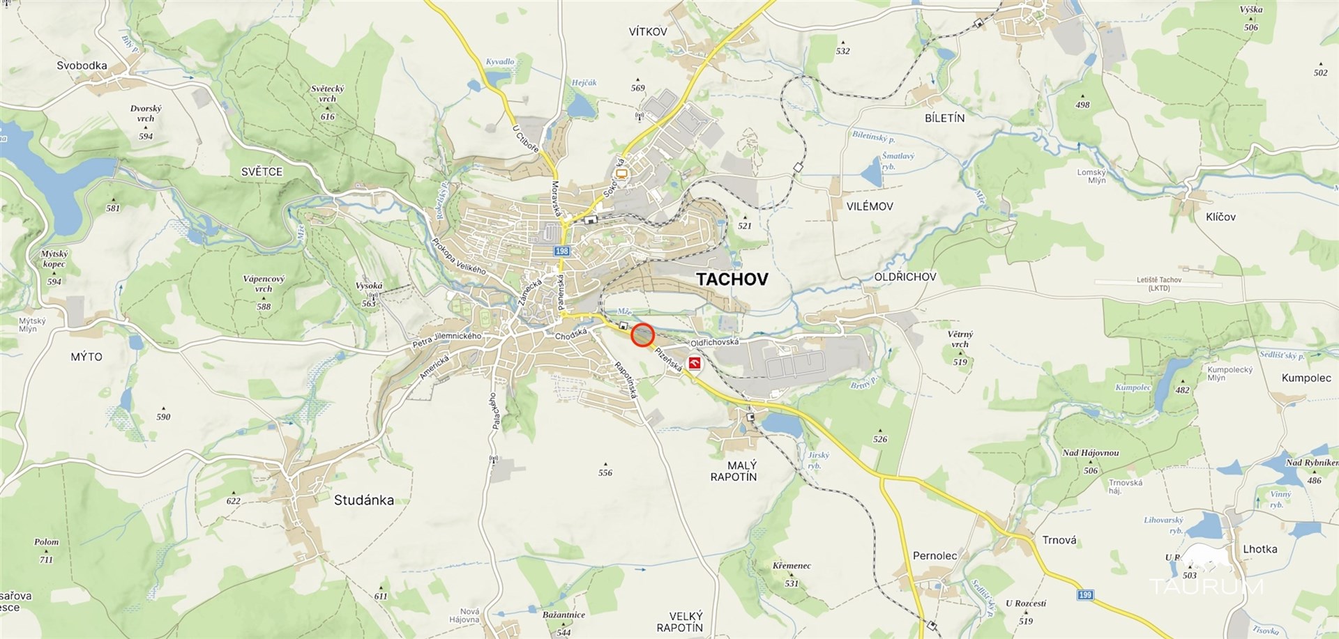Tachov je okresním městem s veškerou občanskou vybaveností i skvělou dopravní dostupností. Rychlé napojení na dálnici D5 zajišťuje pohodlné spojení s Plzní, Prahou i Německem, skvělé spojení je i směrem na Mariánské Lázně, potažmo Cheb.
