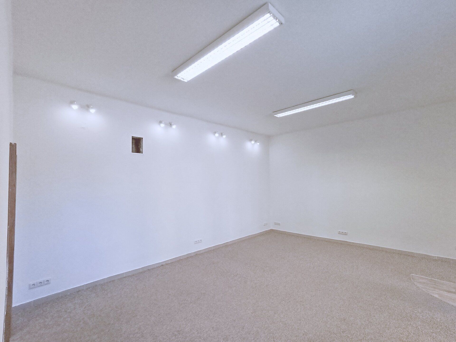 Prostor je dostatečně osvětlen a je zde i dostatečné množství zásuvek 220 V (dokonce i 380 V). Prostor lze užívat i jako prodejnu.