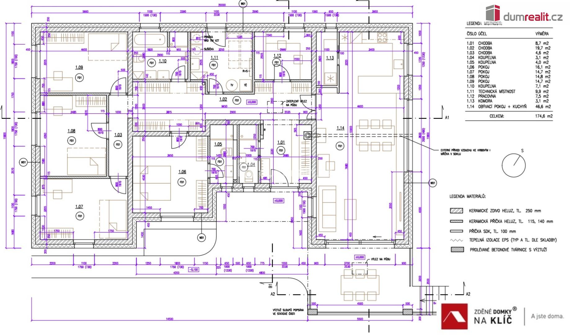 Velkorysý prostor: Dispozice 6+kk s užitnou plochou 175 m² poskytne dostatek soukromí i pro velkou rodinu nebo domácí pracovnu.