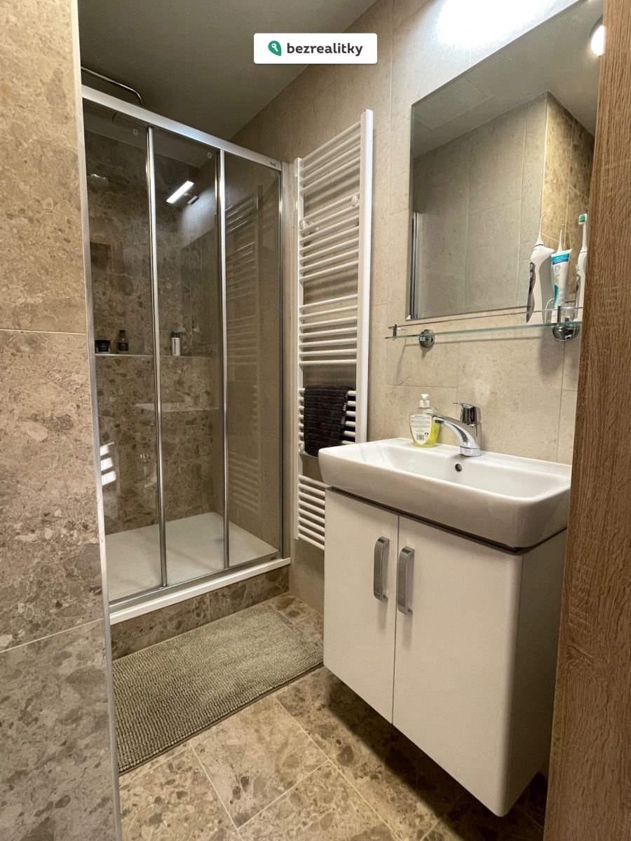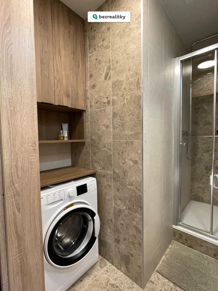 - koupelna se sprchovým koutem, pračkou, vestavným nábytkem, elektrický otopný žebřík pro celoroční užívání