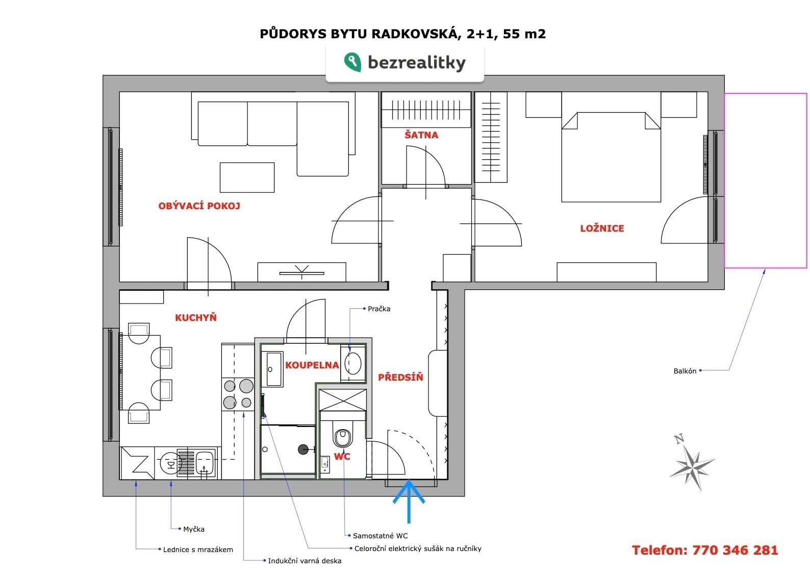 Nabízíme k prodeji světlý a prakticky řešený byt 2+1 v osobním vlastnictví o celkové ploše 55 m². Byt je po kompletní rekonstrukci a připraven k okamžitému užívání bez nutnosti dalších investic.