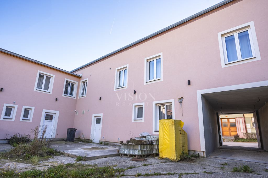 K objektu patří i uzavřený dvůr, který zajišťuje soukromí a klidné zázemí s možností vybudování menšího parku Velkou výhodou je také prostorné parkoviště jen pár kroků od domu.