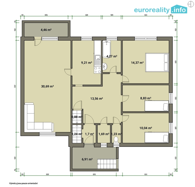 Celková plocha nemovitosti činí 1174 m² a zahrnuje také užitnou plochu, která je dostatečná pro komfortní život. Jakmile vstoupíte do bytu, budete ohromeni prostornými pokoji, které nabízejí dostatek místa pro rodinné aktivity. Dětské pokoje jsou útulné a plné přirozeného světla, což vytváří ideální prostředí pro hru a učení.