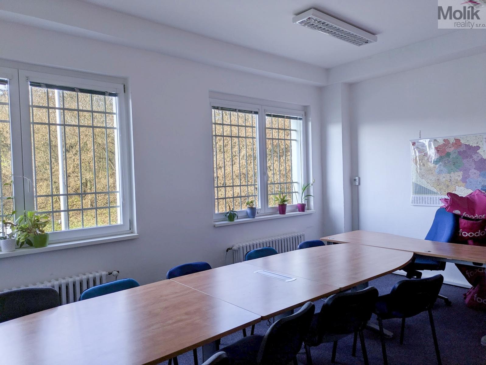 Kancelář se nachází v 1.patře ( 2.NP) a má k dispozici 2 x WC na patře (na klíč) a společnou kuchyni. Volná do týdne.