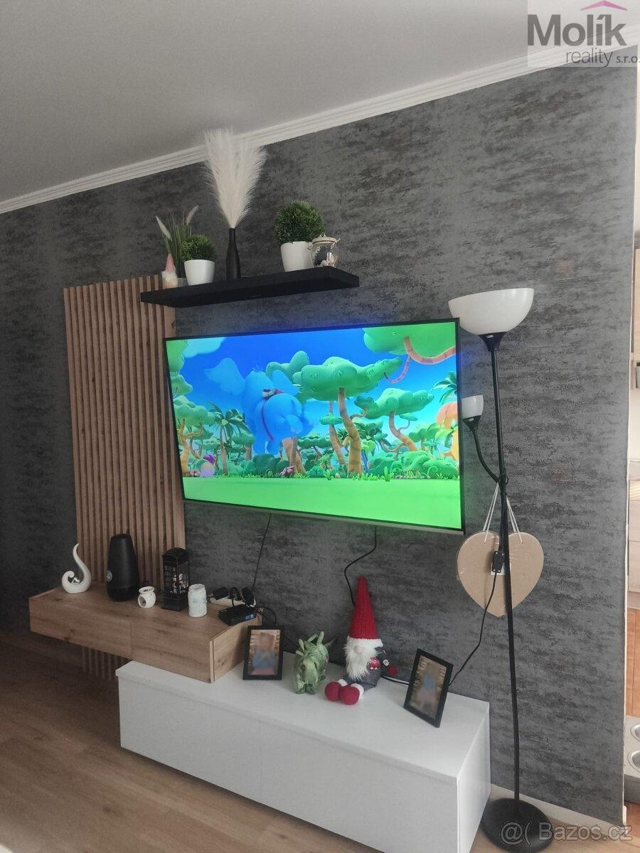 Nábytek na fotografiích je součástí pronájmu (kromě nábytku, který je na fotografii s televizorem) tato fotografie je přiložena pro představu jak nyní vypadá obývací pokoj (obývací stěna po dohodě může zůstat). Nové fotografie budou doplněny po převzetí bytu od současných nájemníků