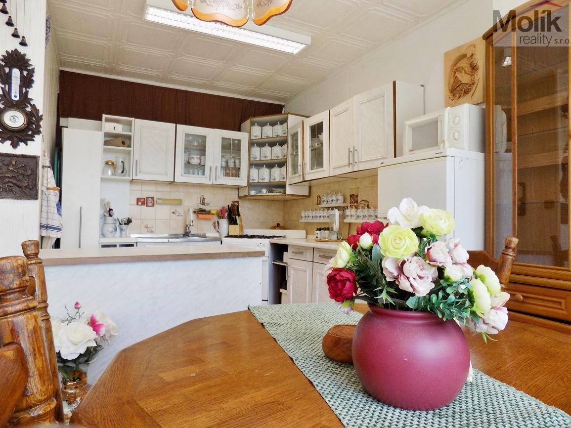 V zastoupení majitele nemovitosti nabízíme k prodeji byt 3+1 s lodžií v družstevním vlastnictví v ulici Trnovanská v Teplicích poblíž základní školy u Panoramy. Jedná se o jednu z nejvyhledávanějších klidných lokalit ve městě se zelení, dětským hřištěm a parkem v okolí domu. Dům je po kompletní rekonstrukci, má zateplenou fasádu, plastová okna i vchodové dveře a velmi pěkné udržované vnitřní prostory. Vzhledem k celkovému stavu nemovitosti a místu se jedná o ideální klidné bydlení s veškerou občanskou vybaveností v blízkosti domu. Samotný byt k prodeji o celkové ploše 74 m2 se nachází v 3. patře sedmipatrového domu s výtahem a sestává z kuchyně, která je prostorově propojena s obývacím pokojem se vstupem na 6 metrů dlouhou lodžii (orientovanou na západ), dále pak na druhé straně bytu dva pokoje situované na východní stranu. Předsíň bytu a koupelna s toaletou byly zdařile zrekonstruovány, čímž byt získal více prostoru v koupelně a praktickou obdélníkovou předsíň s vestavěnou skříní. V koupelně je rohová vana, toaletní koupelnová stěna s umyvadlem a prostor pro pračku (v bytě je nová pojistková skříň a pračka disponuje samostatným el. okruhem). V kuchyni se nachází rohová kuchyňská linka s plynovým sporákem, elektrickou troubou, lednicí, mikrovlnnou troubou a vysouvací skříňkou s drátěným systémem. Stropy v kuchyni a obývacím pokoji jsou hlukově a tepelně odizolovány. Odpady a přívod vody jsou provedeny v plastu. Radiátory jsou osazeny termoregulačními ventily a digitálními měřidly s dálkovým odečtem. Výhodou jsou nízké náklady na bydlení 3.481,- Kč + elektřina. K bytu náleží komora u vchodových dveří do bytu.