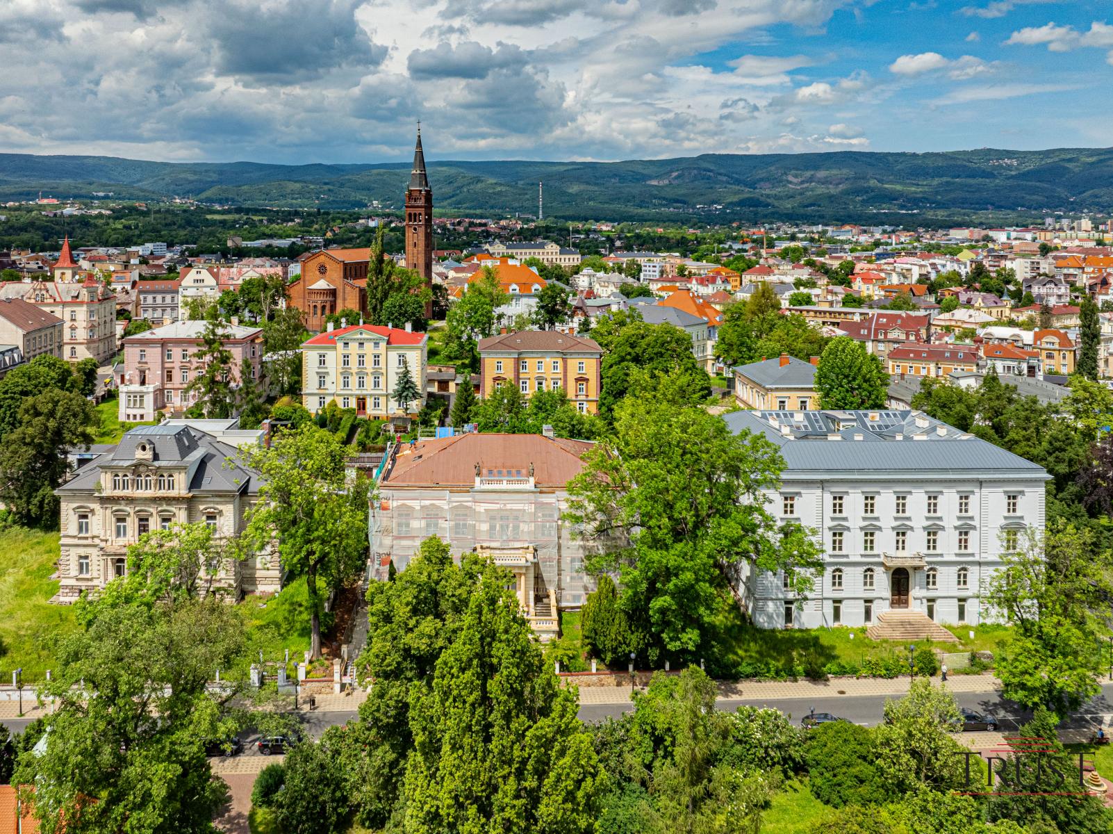 Výjimečný objekt s pozemkem o rozloze 1 796 m a užitnou plochou 2 969 m nabízí jedinečnou příležitost propojit historický půvab a současný komfort. Nachází se v lázeňské oblasti Teplic, pouhé dvě minuty od výstavby hotelu Hilton, obchodních center Galerie a Fontána a Krušnohorského divadla. V bezprostřední blízkosti se rozkládají rozlehlé parky, lázeňské domy a kompletní občanská vybavenost, což vytváří ideální prostředí pro klidné i městské bydlení.