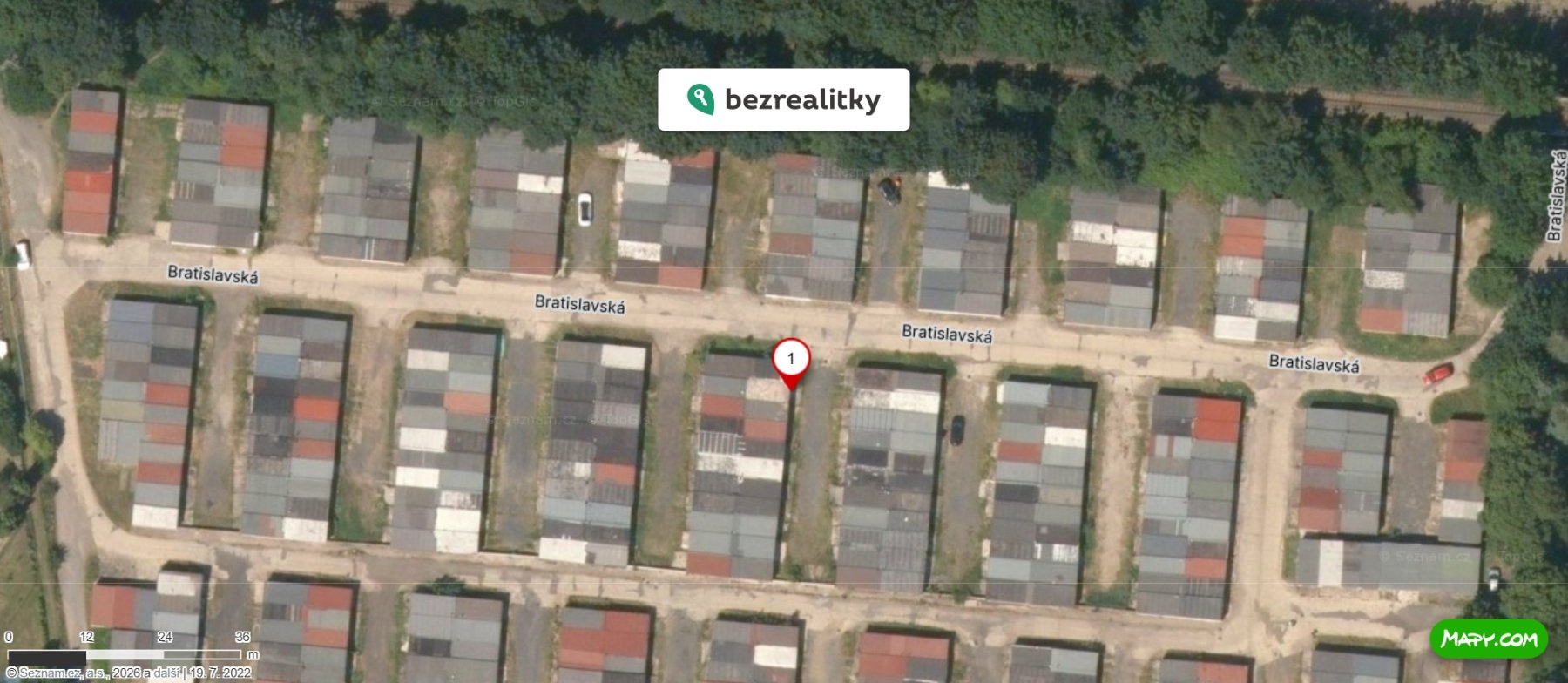 Umístění garáže je na frekventovaném místě, kde se parkují vozidla a kutí se, v pěší vzdálenost 5 minut do centra, lokalita je plně obydlena, je zde velký zájem i o pronájem, investičně zajímavé.