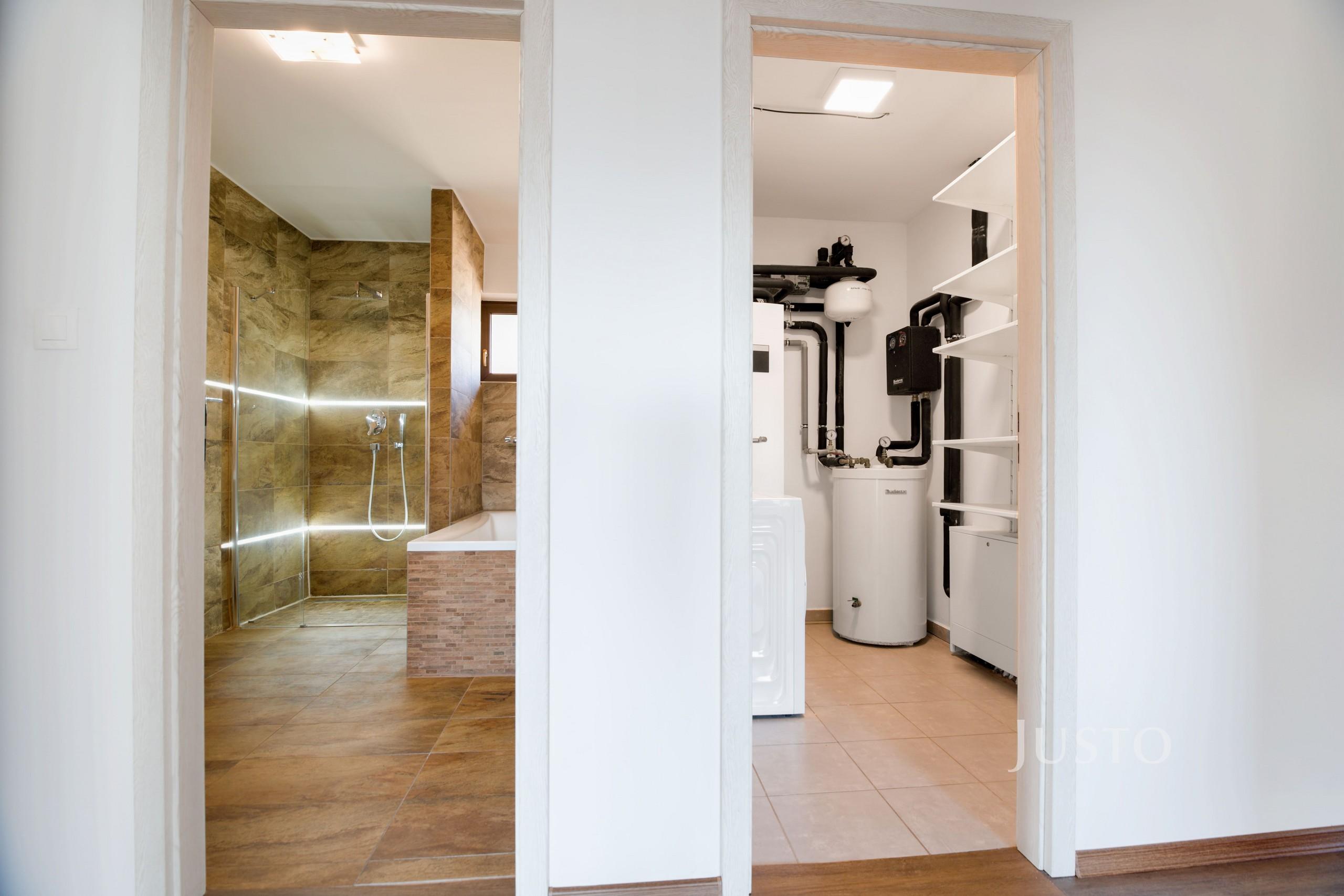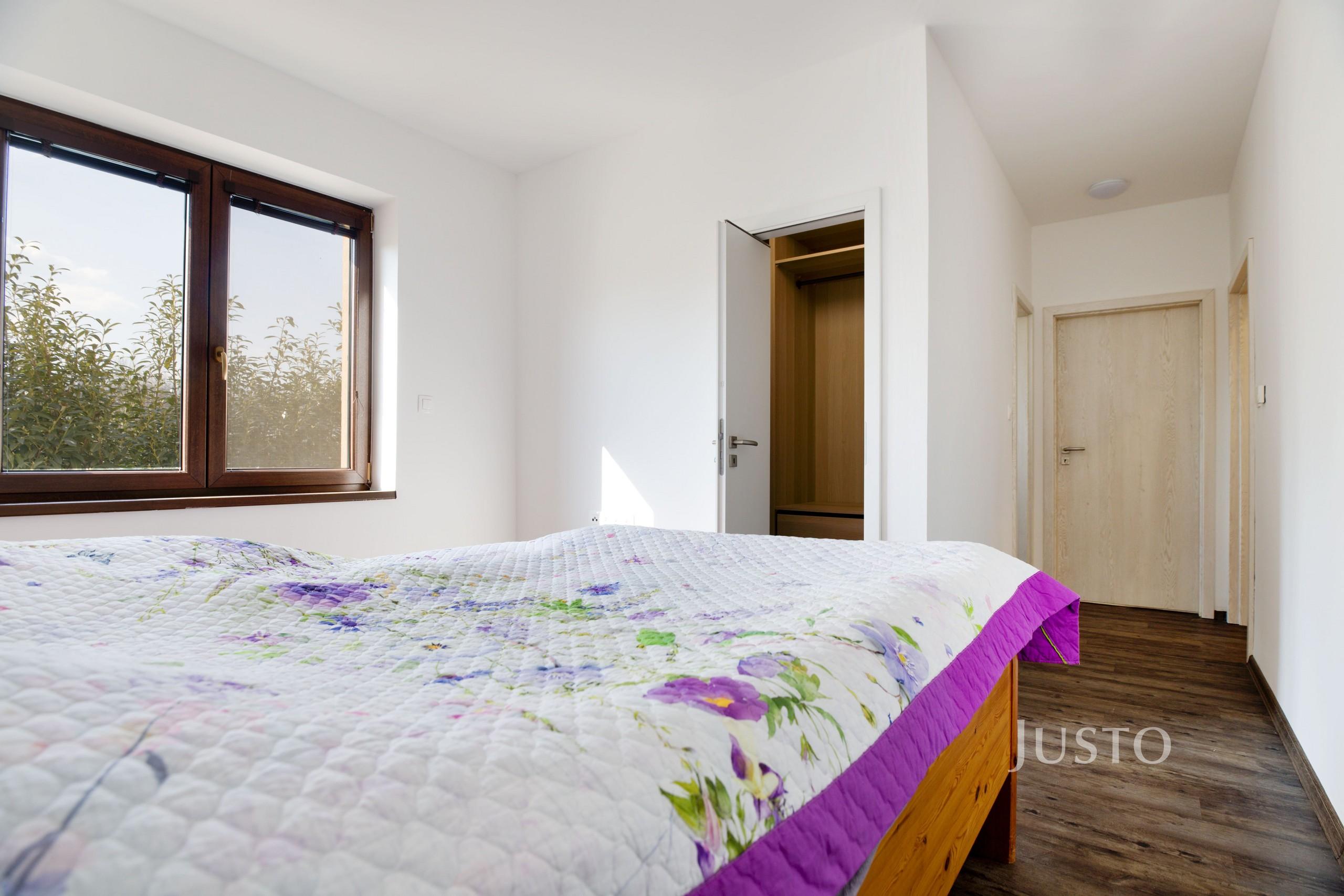 Dispozice domu nabízí 6 pokojů, které zajišťují dostatek místa i pro vícečlennou rodinu. Kuchyň je vybavena na míru vyrobenou kuchyňskou linkou s vestavěnými spotřebiči, jako je myčka, indukční varná deska a trouba. Koupelna splňuje vysoké standardy a nabízí vanu i sprchový kout. Samozřejmostí jsou vestavěné skříně, které poskytují dostatek úložného prostoru. Dům je vybaven moderními technologiemi – podlahovým vytápěním napojeným na tepelné čerpadlo, příprava na zabezpečovací systém, plastovými okny se žaluziemi a sítěmi proti hmyzu. Interiér je světlý, vzdušný, s příjemnou výškou stropů 2,65 m a kvalitními obložkovými zárubněmi.