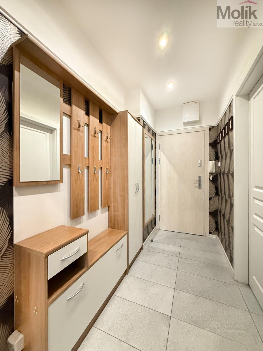Byt je vybavený nábytkem, který zůstává součástí podnájmu.