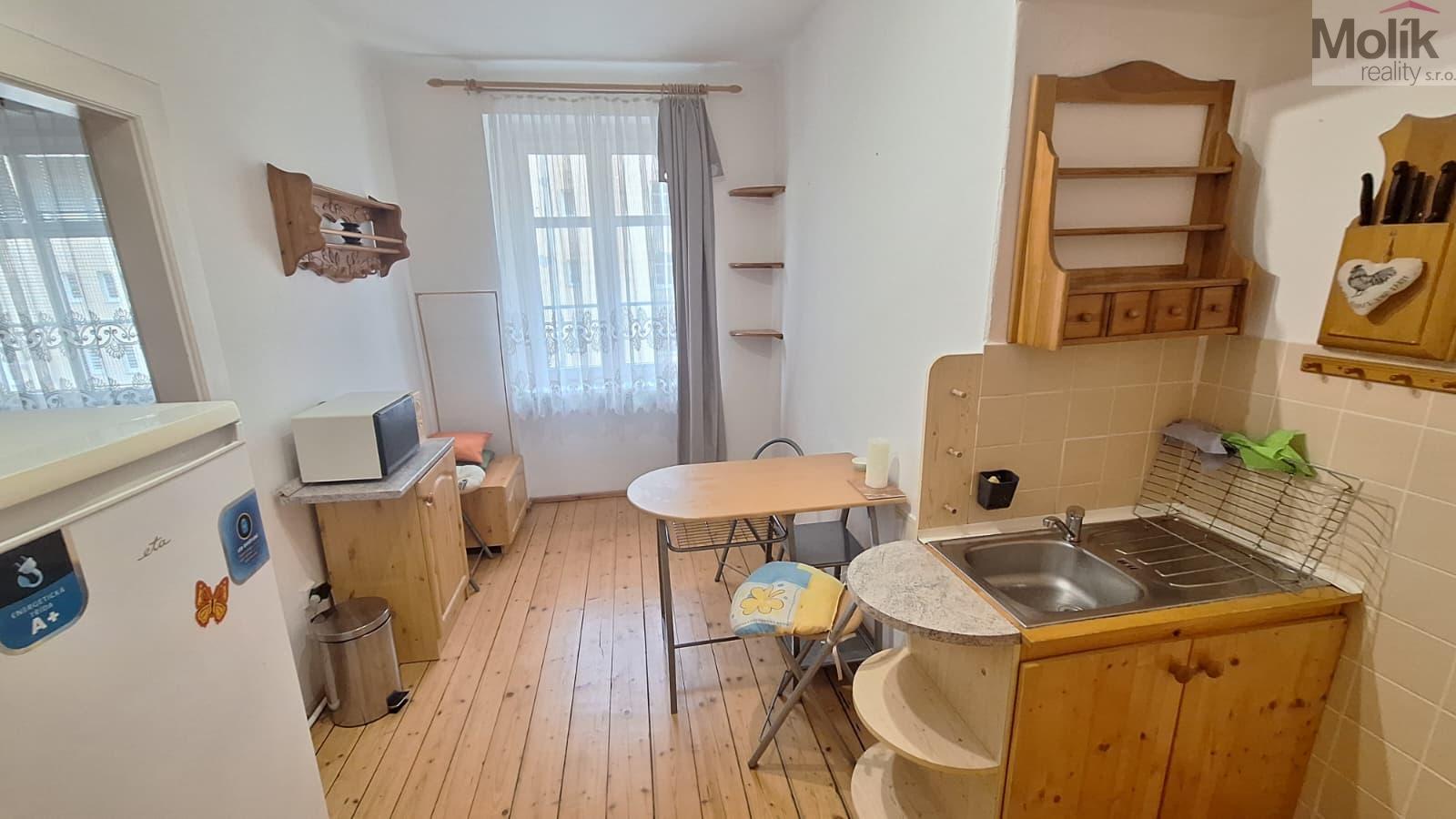 Nabízíme pronájem bytu 1+1 v družstevním vlastnictví o podlahové ploše 42 m2 ve 3. nadzemním podlaží cihlového domu v Teplicích - ulice 14. října. Byt má na zemi dřevěné podlahy, keramickou dlažbu. V koupelně se nachází toaleta a sedací vana, Kuchyňská linka s plynovým sporákem, k dispozici i lednice a mikrovlnka, jinak byt bude bez vybavení. Vytápění pomocí plynových kamen. Nájemné pro jednu osobu je 8.000,-,+ plyn + elektřina, vratná kauce 2x 8.000,- provize RK 12.000,-. V okolí je veškerá občanská a dopravní vybavenost. Pouze velice slušným a pracujícím klientům. max 2 osoby, bez domácích mazlíčků.