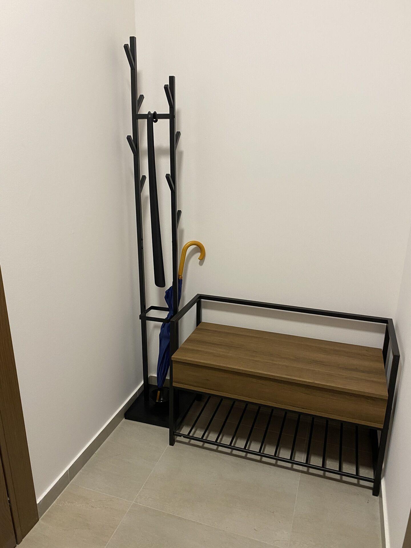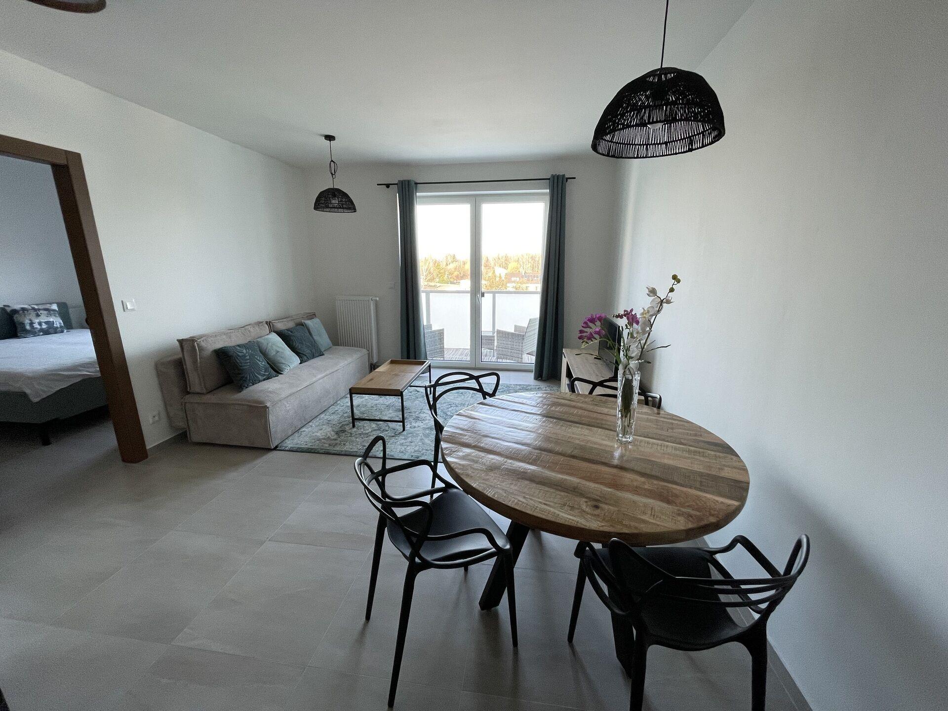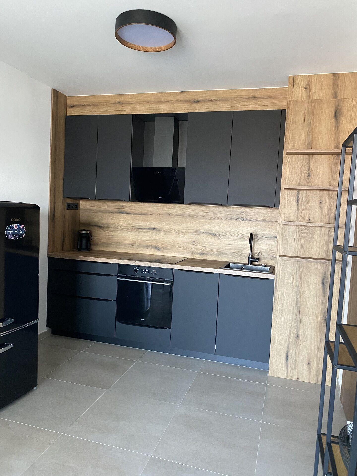 Byt se pronajímá jako plně vybavený, takže je připraven k okamžitému nastěhování bez dalších investic. K dispozici je moderní kuchyňská linka včetně vestavných spotřebičů (trouba, varná deska, digestoř, myčka, lednice), jídelní stůl se židlemi, pohodlný gauč, postel, záclony, televize a také venkovní posezení na balkoně. Vytápění je řešeno centrálně teplovodem, což spolu s kvalitním zateplením budovy přispívá k nízkým provozním nákladům. K bytu náleží sklepní kóje.