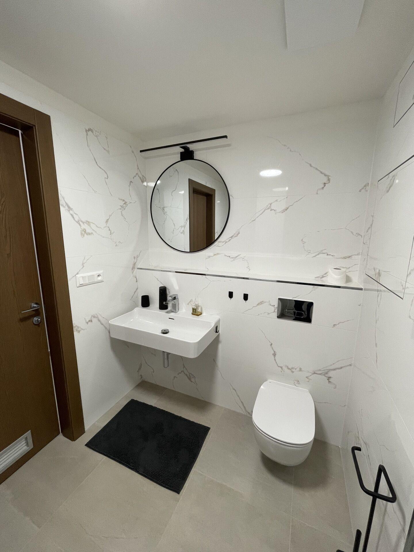 Dům je vybaven výtahem a nabízí bezbariérový přístup. Samotný byt je velmi světlý a jeho velkou předností je prostorný balkon, ideální pro relaxaci. Balkon je orientovaný na severozápad a nabízí příjemný výhled na Krušné hory i okolní lesopark. Interiér byl proveden s důrazem na kvalitu – najdete zde velkoformátové obklady a dlažby španělské výroby, sanitární vybavení značky Ideal Standard a interiérové dveře od italského výrobce.