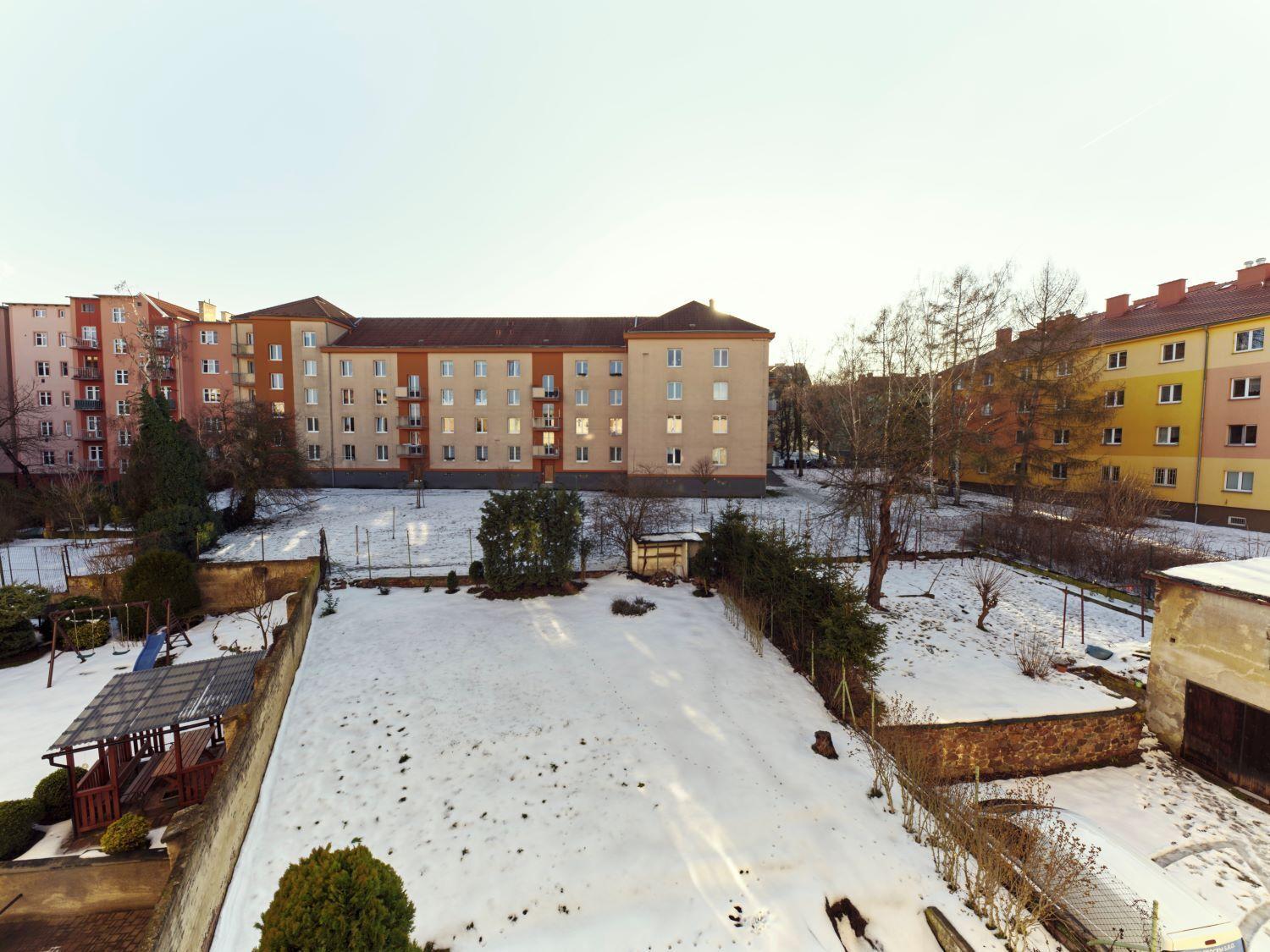 Byt 3+kk o výměře 62 m² se zahradou o výměře 256 m² se nachází v 1. NP domu v ulici Ruská 1912.