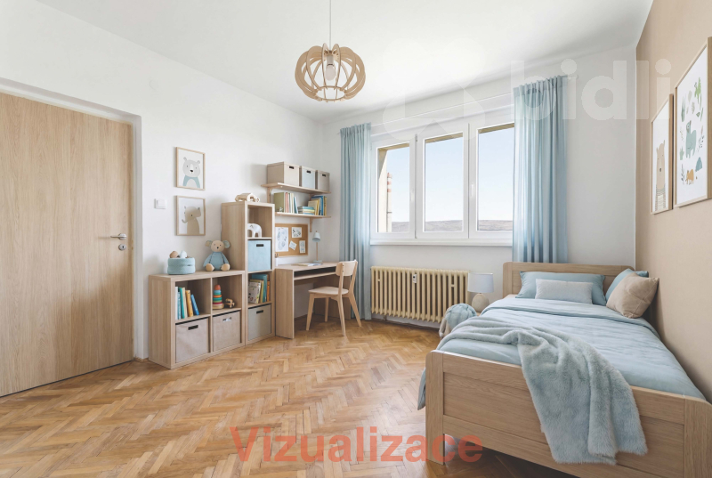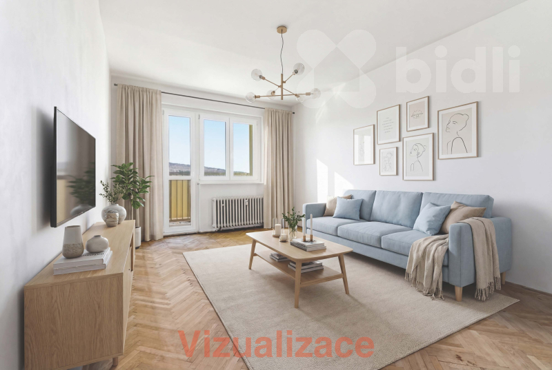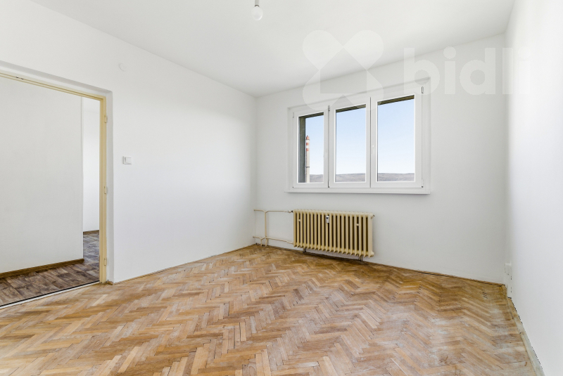 Dispozice bytu tvoří tři samostatné pokoje, kuchyň, koupelna, oddělené WC a vstupní chodba. Velkým plusem je, že místnosti jsou světlé a mají dobrý základ pro modernizaci bez nutnosti složitých dispozičních kompromisů.