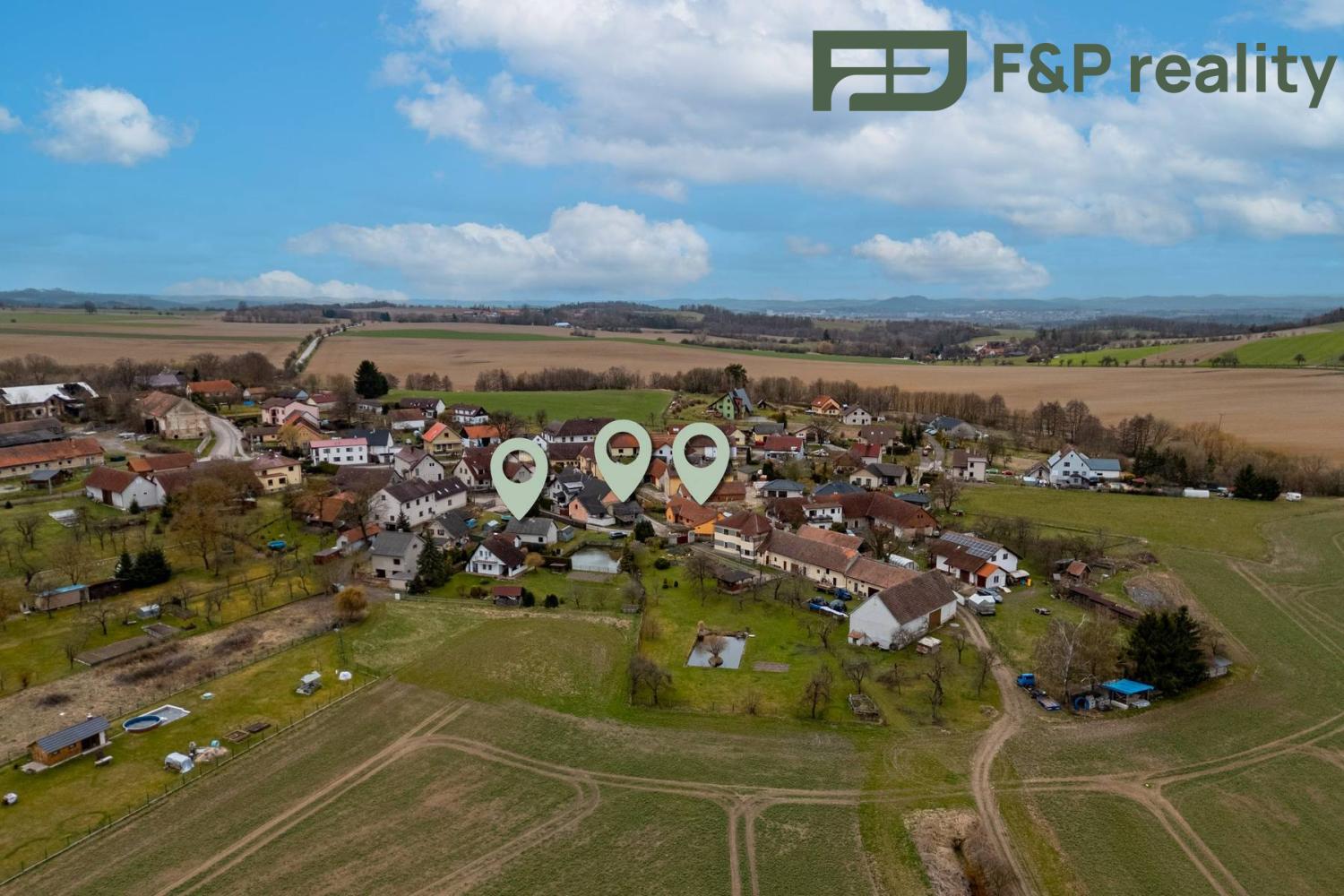 Lokalita nabízí tiché venkovské prostředí obklopené poli a lesy — ideální pro pěší túry, cyklistiku a relaxaci. V okolí najdete turisticky atraktivní místa, např. rozhlednu Špulka. Základní občanská vybavenost a dopravní spojení jsou v krátké dojezdové vzdálenosti: do Teplýšovic 2 minuty autem, do Benešova cca 15 minut, což zaručuje pohodlné víkendové i celoroční využívání.