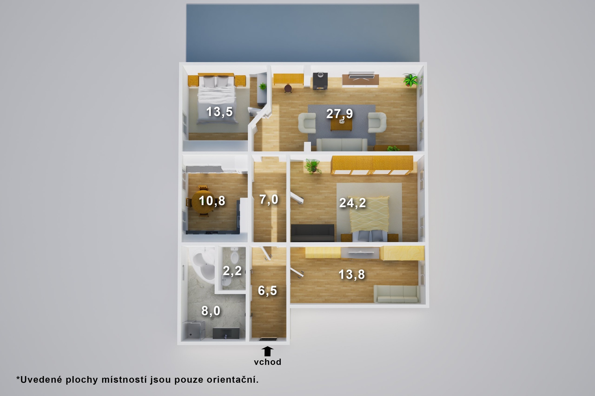 Interiér působí světlým a příjemným dojmem a díky své velikosti poskytuje komfortní zázemí pro každodenní život. Byt nabízí ideální kombinaci prostoru, funkčnosti a pohodlí, a je tak vhodný jak pro rodinu, tak pro jednotlivce, kteří hledají nadstandardně prostorné bydlení.