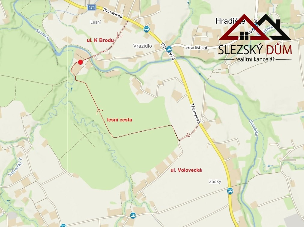 Příjezd k nemovitosti vede po ulici K Brodu nebo Volovecká.