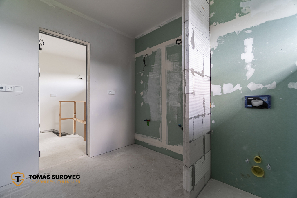 Chcete nový dům, ale nechcete dělat kompromisy? Tento pasivní 3+kk je připravený k dokončení přesně podle vašich představ. Technologie a rozvody jsou hotové – interiér si doladíte sami.