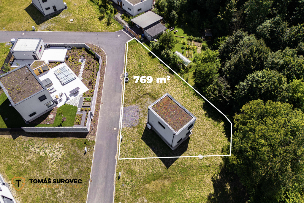 V přízemí je prostorný obývací pokoj s kuchyňským koutem, technická místnost a samostatné WC. V patře pak dvě ložnice a koupelna. Obytná plocha činí 86 m², k tomu terasa 24 m² s výstupem přímo z obýváku. Pozemek o velikosti 769 m² nabízí dostatek prostoru pro zahradu, bazén nebo jen klidné posezení.