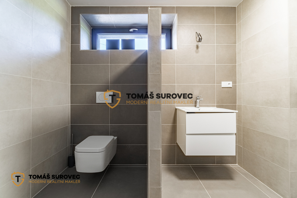 V přízemí se nachází prostorný obývací pokoj se vstupem na terasu, koupelna, technická místnost a spíž. V patře je hlavní ložnice s vlastní šatnou, další dva pokoje a druhá koupelna. Dispozice je ideální pro rodinné bydlení, ale díky atraktivní lokalitě v blízkosti Těrlické přehrady může dům skvěle posloužit i jako investice pro krátkodobé pronájmy.