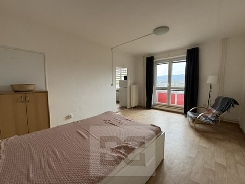 Při vstupu do bytu se nachází předsíň s úložnými prostory, dále samostatné WC a zrekonstruovaná koupelna s vanou, umyvadlem a pračkou. Kuchyně je samostatná a vybavená spotřebiči. Hlavní obytný pokoj je zařízen postelí, komodou a nabízí také přístup na balkon, který poskytuje příjemné místo pro odpočinek.