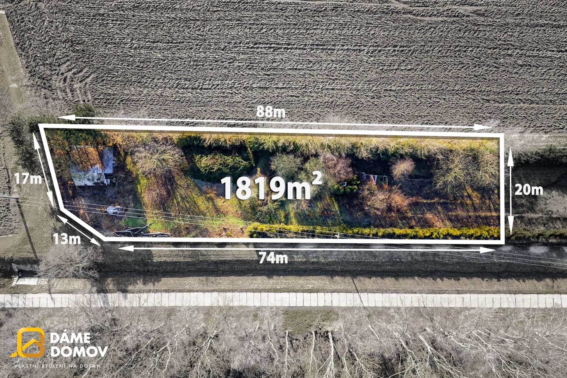 Šířka pozemku: 20 m Délka pozemku: 88 m