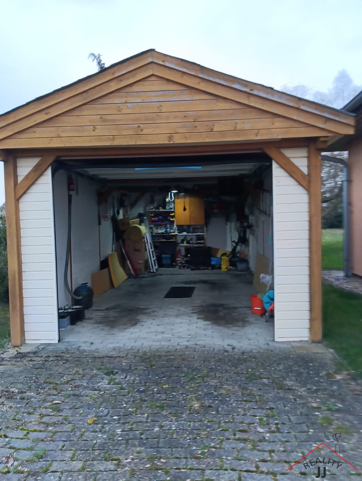 Další předností domu je velká a už velmi zarostlá zahrada , která poskytuje velmi příjemný odpočinek a stejně jako celý dům nabízí skutečně příjemnou atmosféru.. Na zahradě je altánek a velká garáž (20m2),s nájezdem, kde mohou parkovat další 2 vozy. V garáži je prostor pro malou dílnu, ke garáži patří také přístavek pro zahradní techniku.
