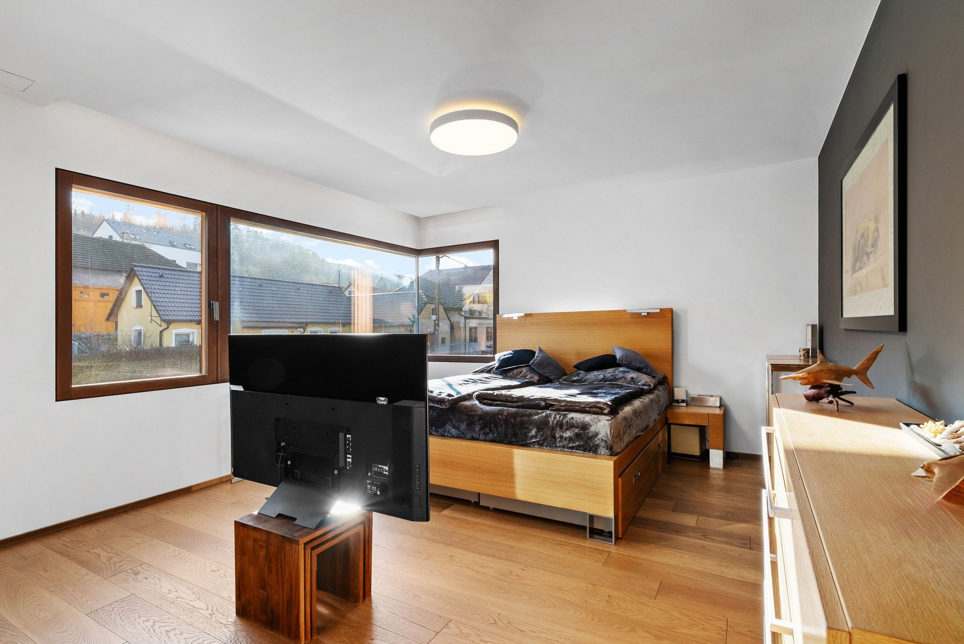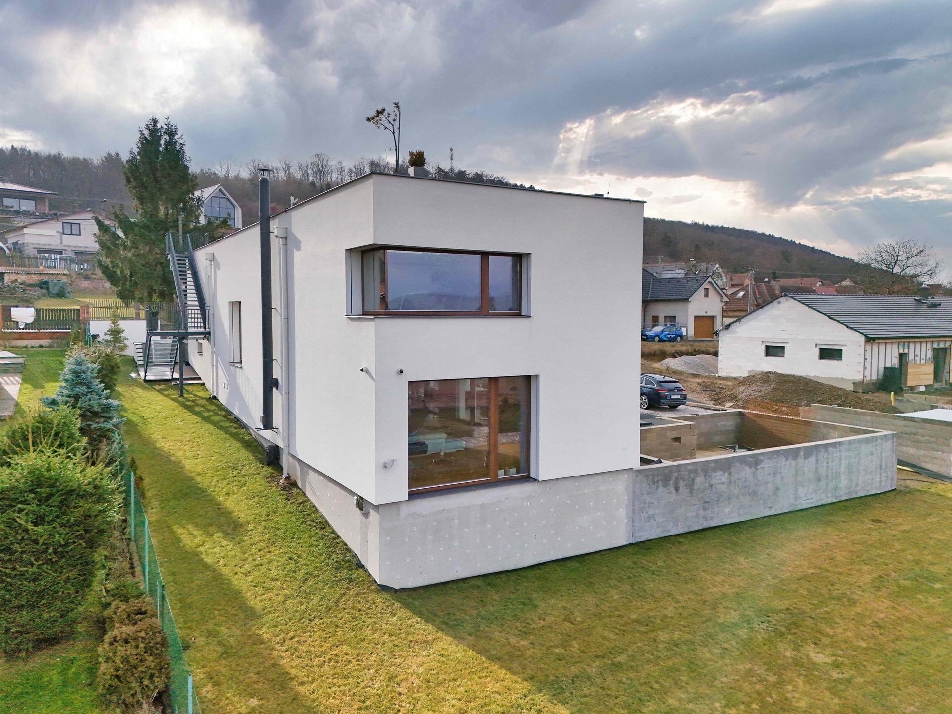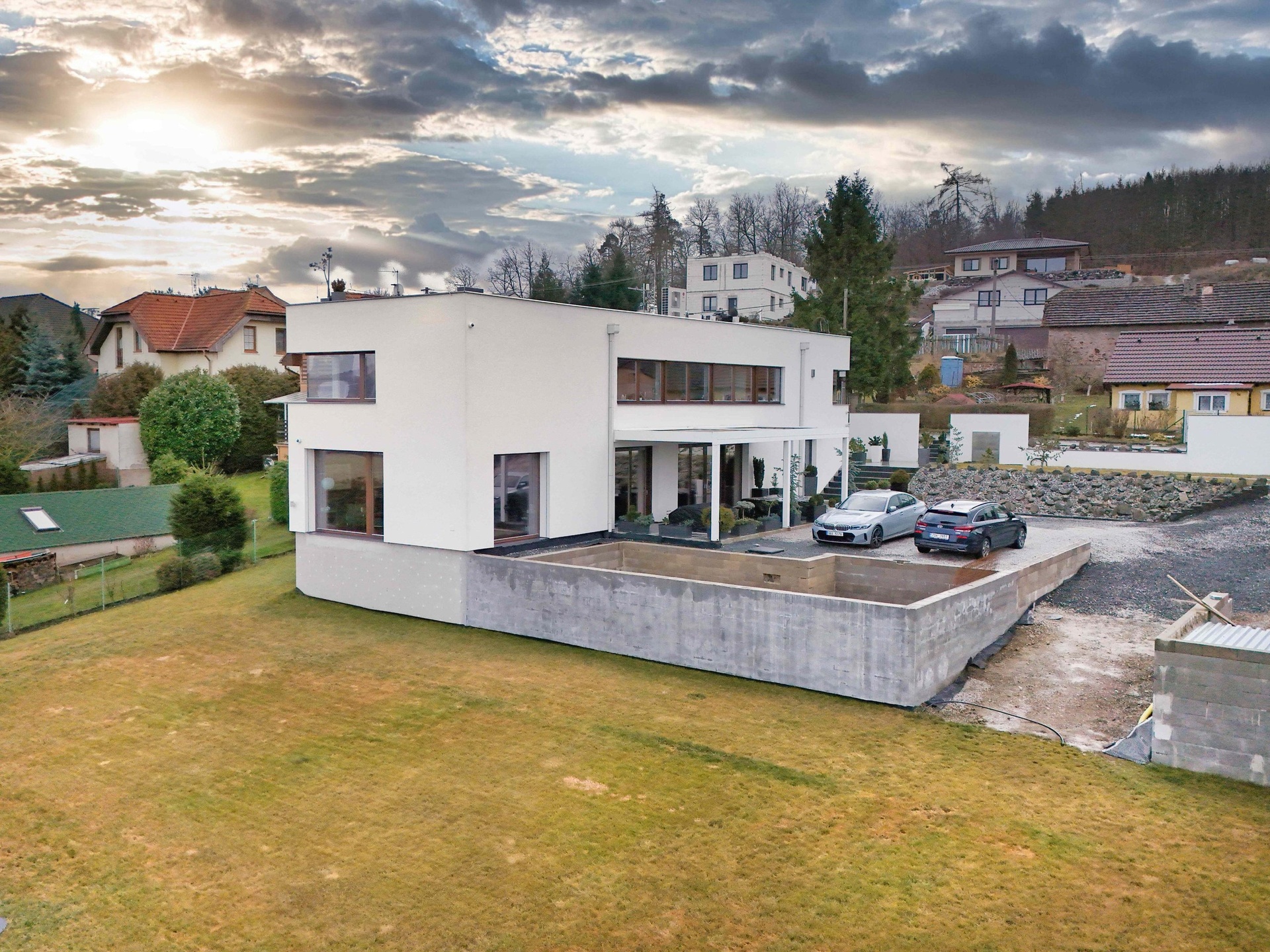 Nabízíme k prodeji výjimečný moderní rodinný dům, situovaný v obci Tmaň, blízko města Králův Dvůr, v klidném prostředí s dostatkem soukromí a dobrou dostupností do Berouna i Prahy. Dům o celkové vnitřní užitné ploše 294 m² je umístěn na pozemcích o celkové výměře 1 634 m², které poskytují nadstandardní prostor pro rodinné bydlení, relaxaci i další rozvoj. Z domu a pozemku se otevírají jedinečné, ničím nerušené panoramatické výhledy na ikonické dominanty Českého krasu – masiv Kotýzu, vrch Zlatý kůň a skalní útvar Aksamitova brána, které dodávají místu výjimečnou atmosféru a prestiž.