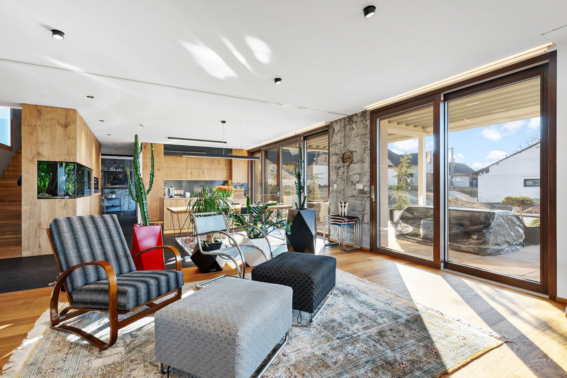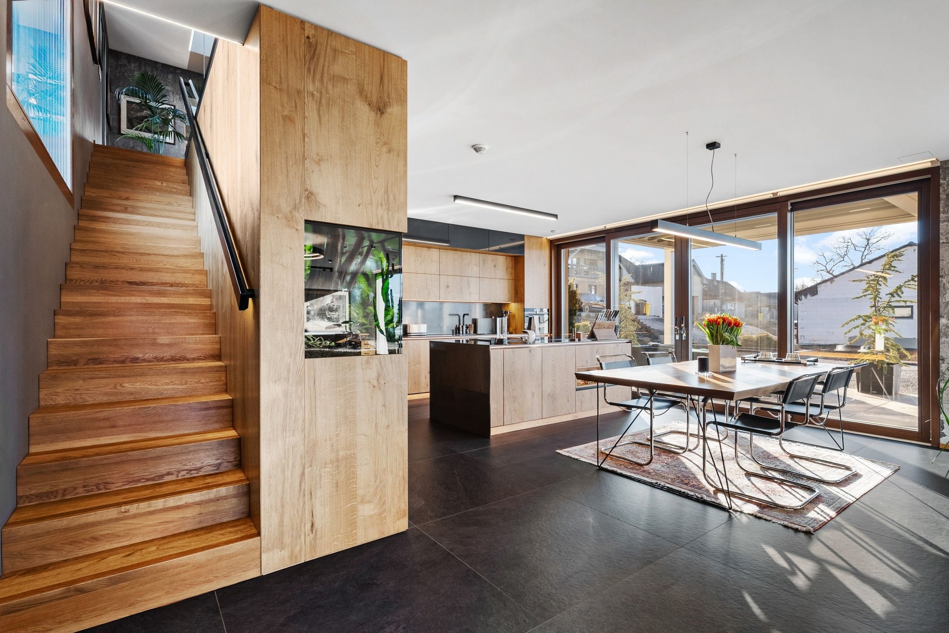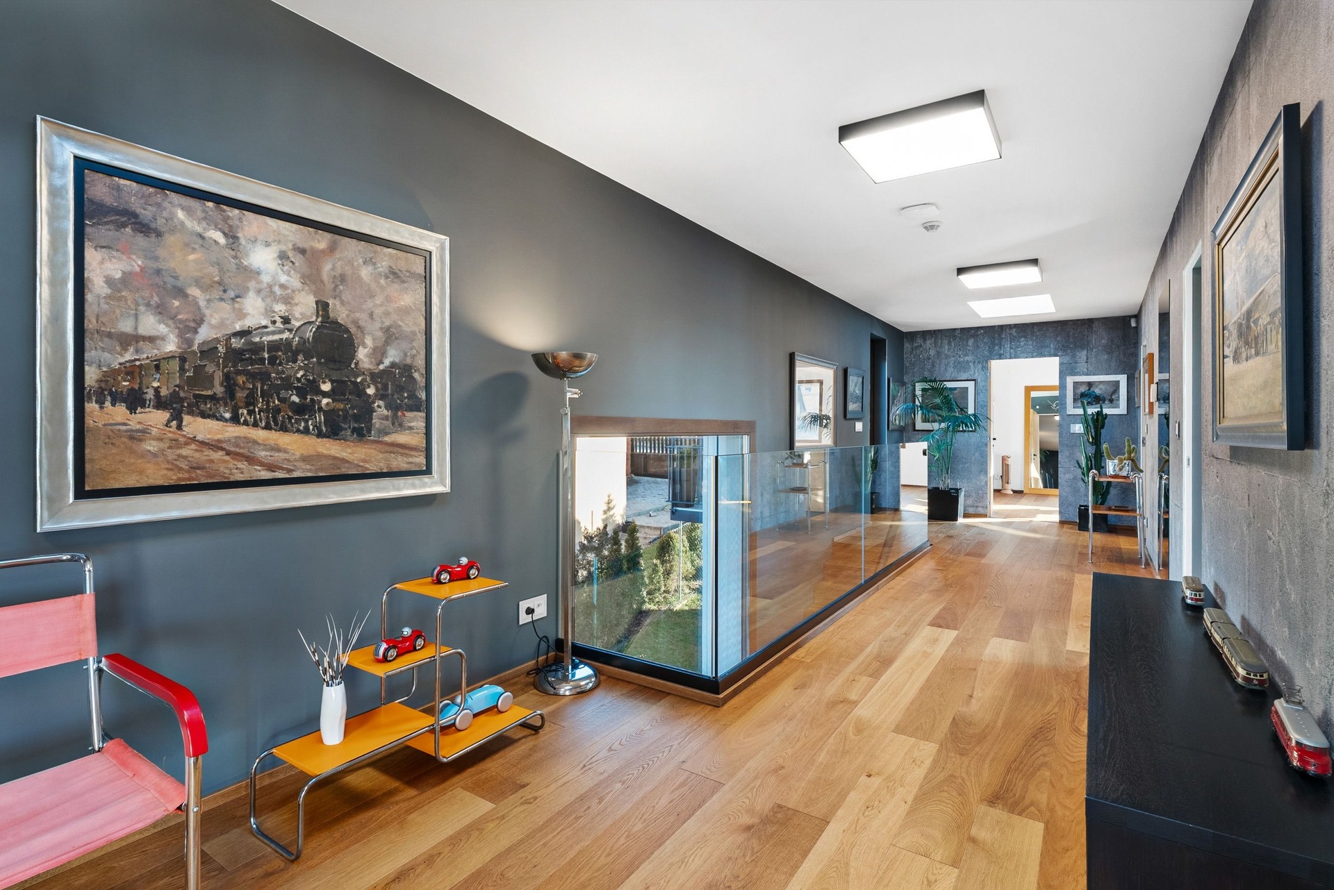 Nabízíme k prodeji výjimečný moderní rodinný dům, situovaný v obci Tmaň, blízko města Králův Dvůr, v klidném prostředí s dostatkem soukromí a dobrou dostupností do Berouna i Prahy. Dům o celkové vnitřní užitné ploše 294 m² je umístěn na pozemcích o celkové výměře 1 634 m², které poskytují nadstandardní prostor pro rodinné bydlení, relaxaci i další rozvoj. Z domu a pozemku se otevírají jedinečné, ničím nerušené panoramatické výhledy na ikonické dominanty Českého krasu – masiv Kotýzu, vrch Zlatý kůň a skalní útvar Aksamitova brána, které dodávají místu výjimečnou atmosféru a prestiž.
