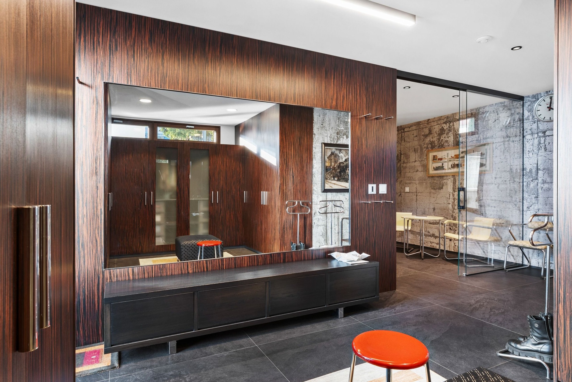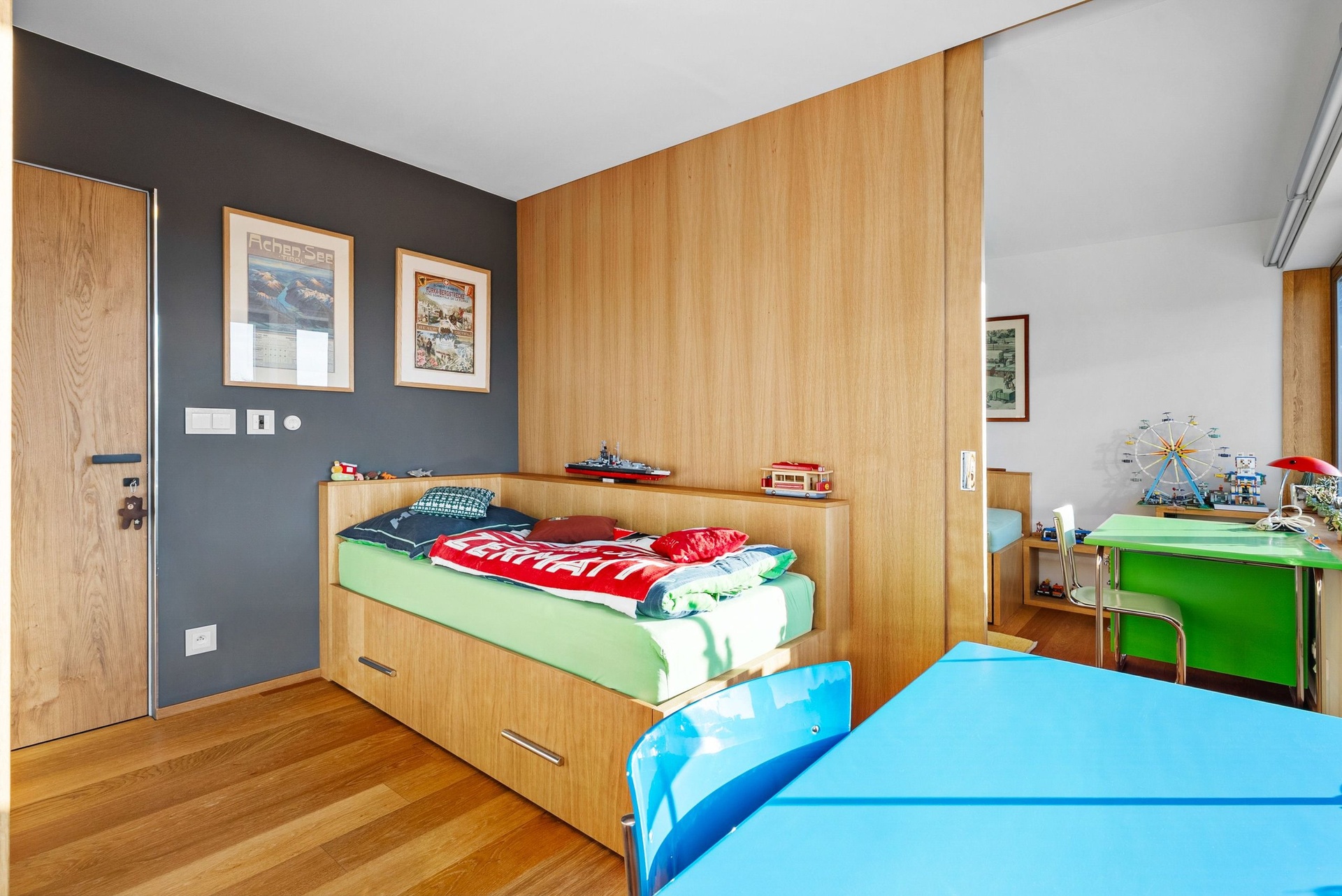 Součástí prodeje je kuchyňská linka včetně vestavěných spotřebičů, kompletní koupelny a sociální zařízení včetně příslušenství a vestavěný nábytek, zejména šatna ve vstupní hale.