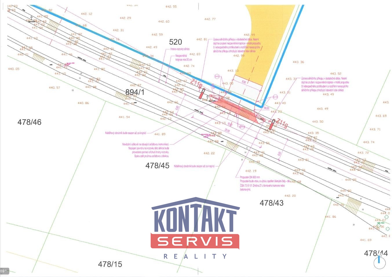 3. Připravené dopravní napojení - Obrovskou výhodou je již vyprojektovaný sjezd a dopravní připojení z komunikace III. třídy. K dispozici je kompletní dokladová složka obsahující všechna potřebná souhlasná stanoviska ( Policie České republiky, Správa a údržba silnic, Odbor dopravy, další relevantní orgány )To znamená, že nemusíte čekat na zdlouhavé administrativní procesy – můžete začít realizovat svůj projekt prakticky okamžitě!