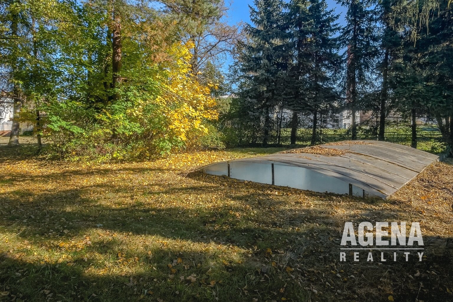 Skutečným klenotem je zahrada. Rozkládá se na ploše 2.452 m² a nabízí nejen původní bazén, ale i naprosté soukromí díky vzrostlým stromům, které navozují atmosféru klidného lesního parku. Tento prostor lze využít mnoha způsoby – jako elegantní zahradu s moderním bazénem, romantický park plný zákoutí k odpočinku, nebo zde přistavět další budovu pro rekreační či wellness účely.