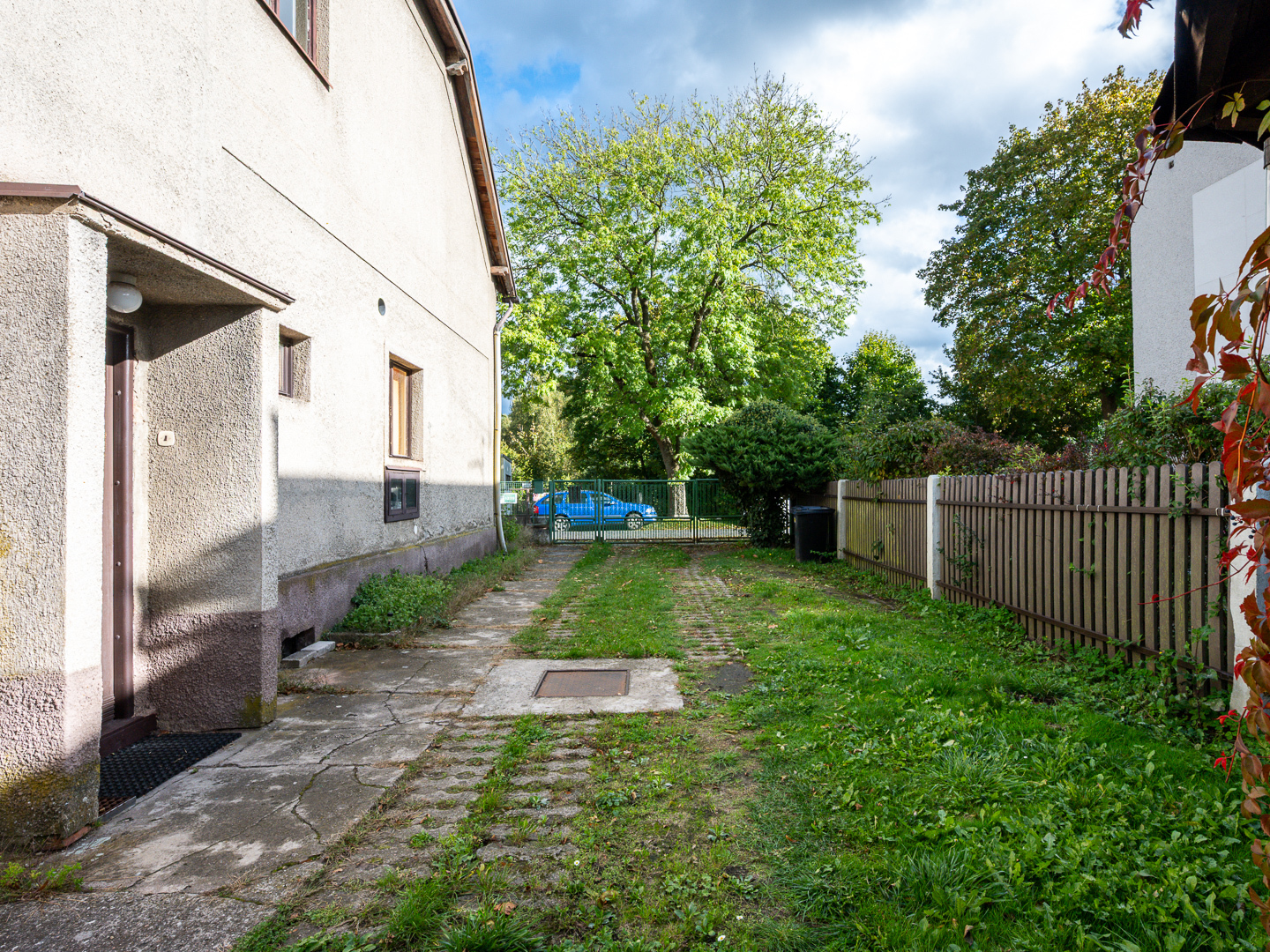 Zahrada je orientovaná do klidné zadní části domu, která svojí rozlohou zhruba 350 m2 nabízí dostatečný prostor k vytvoření zázemí dle představ nového majitele.