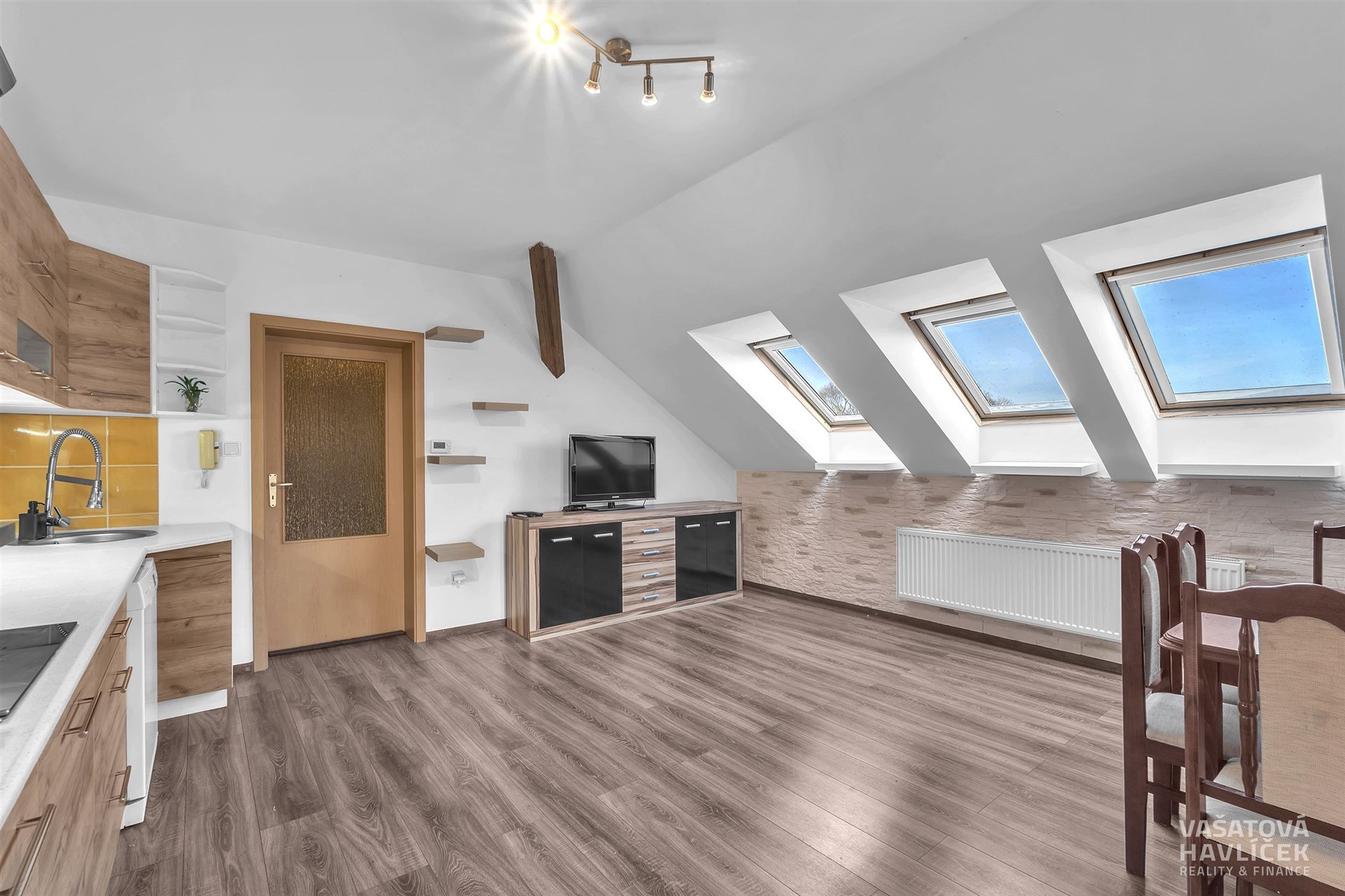 Byt prošel rekonstrukcí a nabízí praktickou dispozici 2+kk – obývací pokoj s kuchyňským koutem, samostatnou ložnici, koupelnu s WC. V obytném pokoji je položena plovoucí podlaha, v ložnici je na podlaze koberec a v koupelně dlažba. Byt je vybaven střešními okny Velux a plastovým bočním oknem. Byt je orientovaný na východní a jižní stranu.