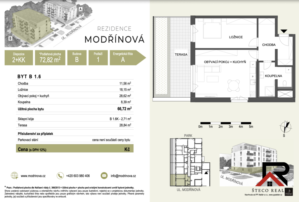 Byt o celkové ploše 72,82 m² a užitné ploše 66,72 m² se nachází v prvním nadzemním podlaží, což zajišťuje pohodlný přístup. Prostor je navržen tak, aby splňoval požadavky i nejnáročnějších obyvatel, s důmyslným uspořádáním, které nabízí dostatečnou variabilitu a možnosti kreativity při zařizování interiéru.