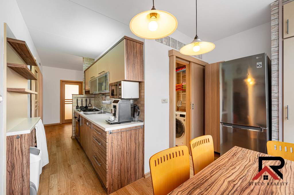 zděné bytové jádro včetně nové elektroinstalace, moderní kuchyňská linka, nové vinylové podlahy (mimo ložnice a dětského pokoje), vestavěné skříně, velmi dobrý technický stav