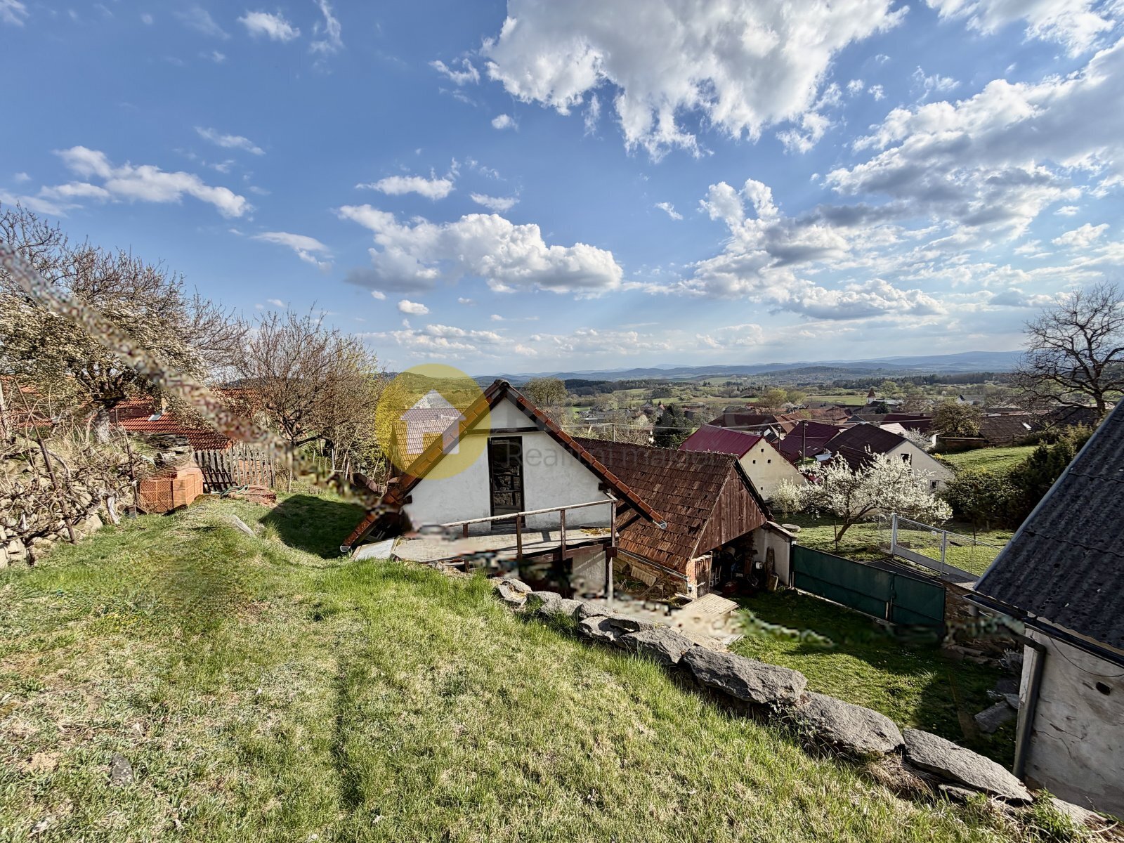 Nad úrovní domu je zahrada a nabízí krásný výhled do krajiny.