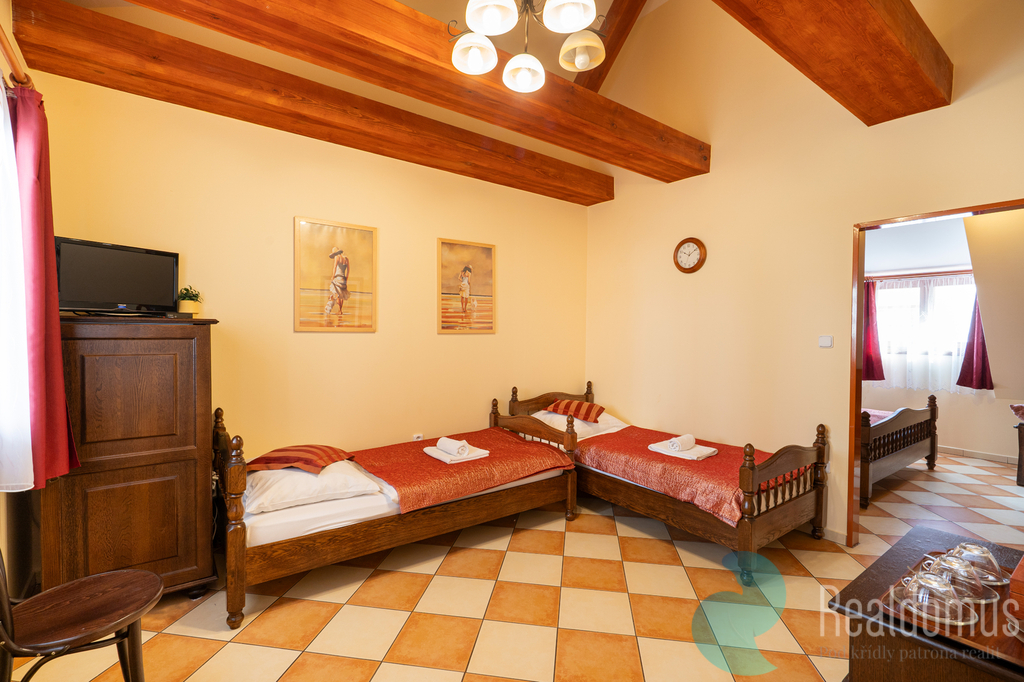 Sousední budova poskytuje prostor pro vybudování až 5 nových pokojů nebo vlastní restaurace. Tím lze významně navýšit kapacitu i výnosnost celého provozu.