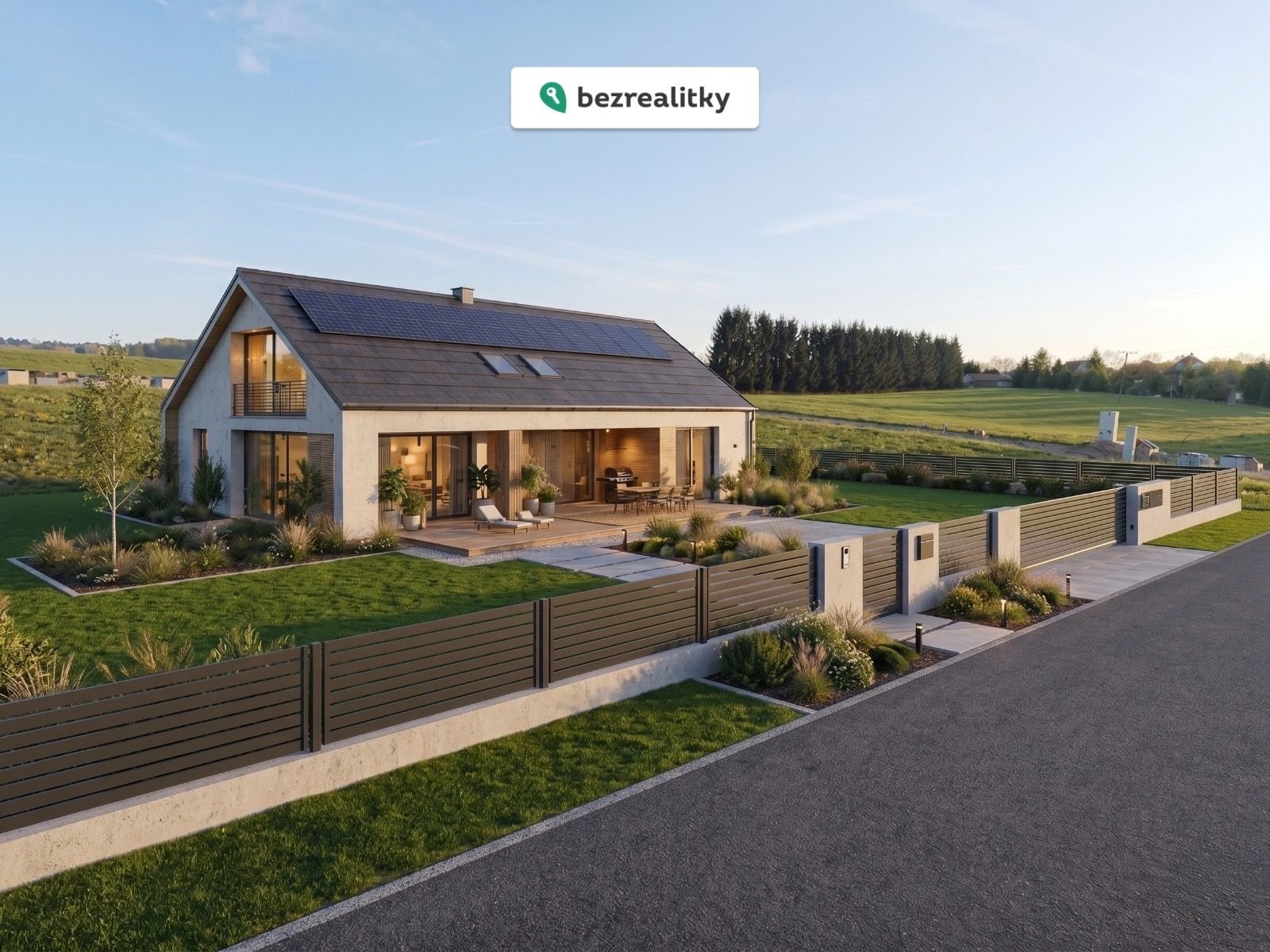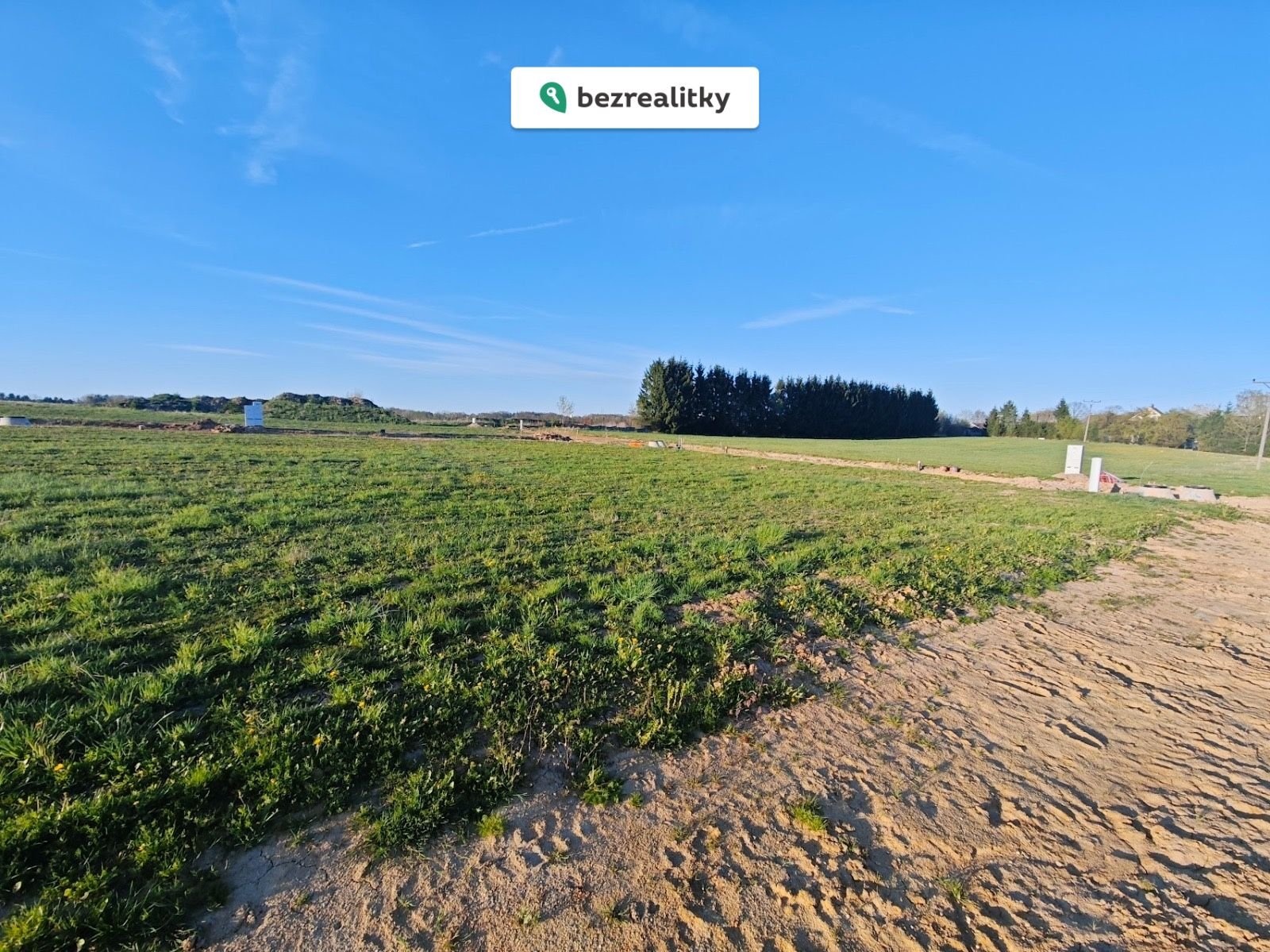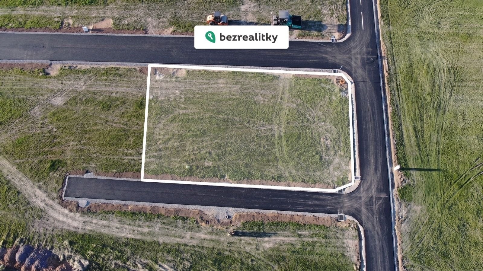 Příjezdová cesta se právě dokončuje – bude asfaltová s veřejným osvětlením. Hlavní příjezd je řešen jako jednosměrný, takže se nemusíte obávat průjezdové dopravy. Žádné kolony, žádný hluk.