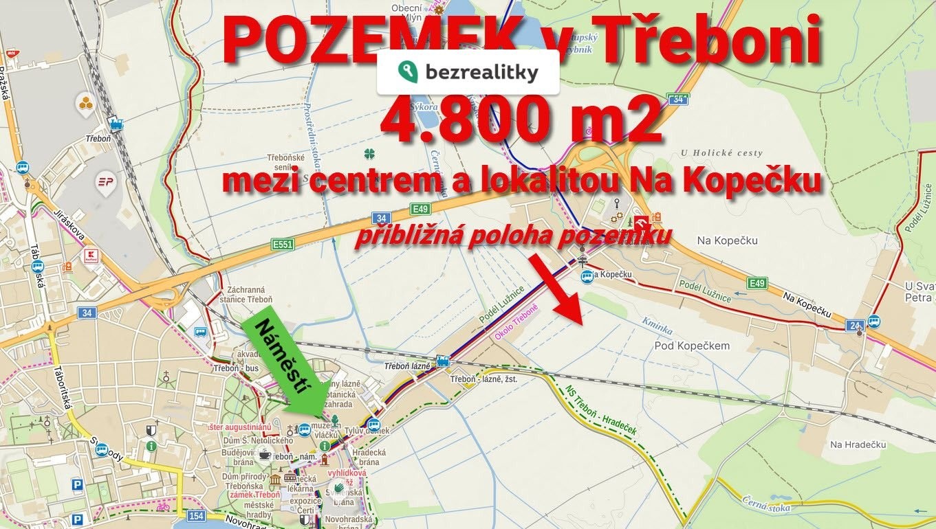Nabízím k prodeji pozemek o výměře 4800 m2, situovaný ve velmi zajímavé lokalitě v docházkové vzdálenosti od centra města Třeboň a lázní.