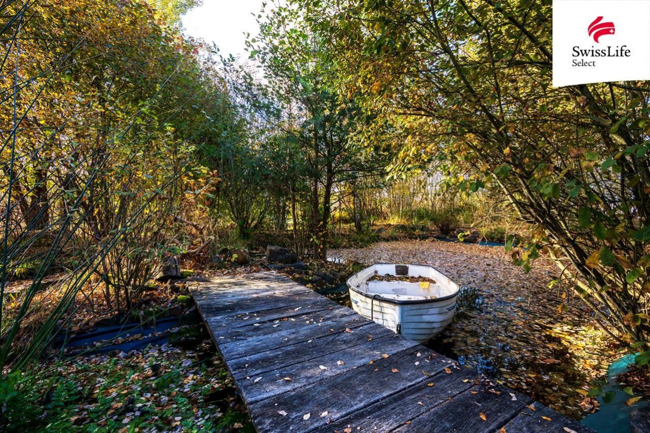V důmyslně koncipované a botanicky rozčleněné zahradě si můžete vychutnat projížďku loďkou po jezírku, posezení v altánku ať už při příležitosti větší oslavy nebo jen grilování s rodinou či se realizovat v zeleninové a bylinkové části zahrady se skleníky. Pro účely zalévání je na pozemku studna i podzemní nádrž na dešťovou vodu.