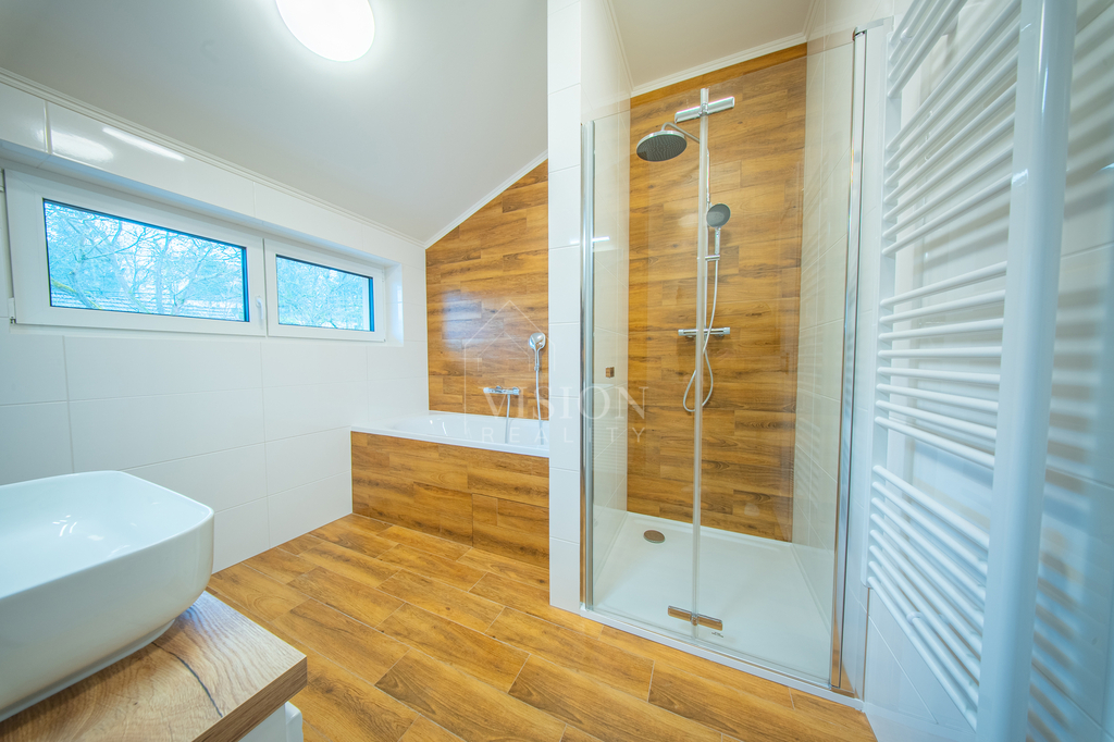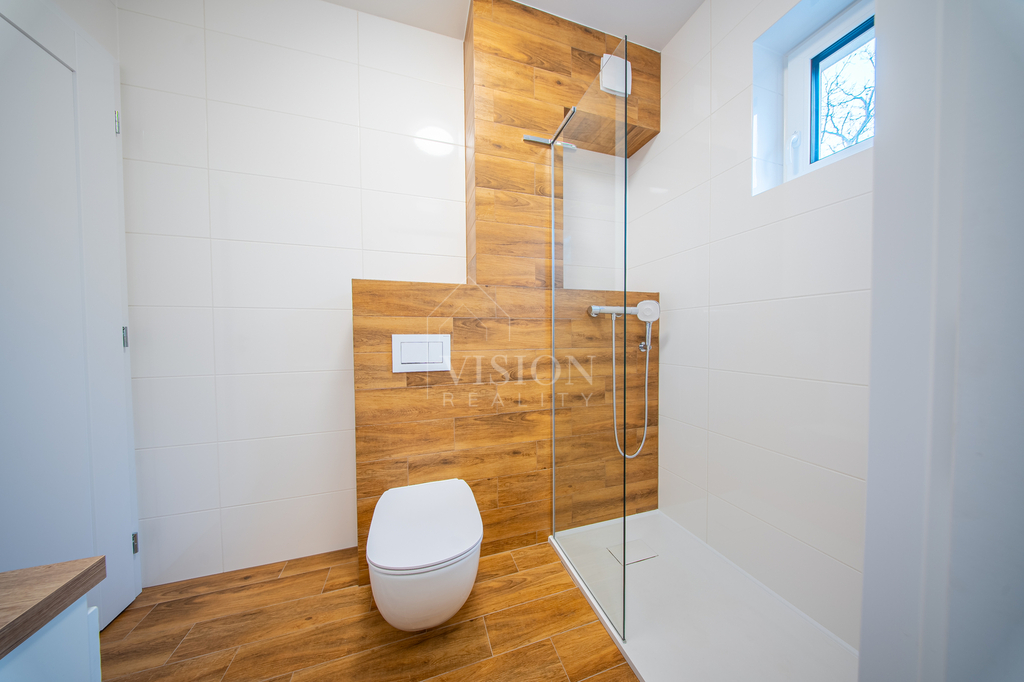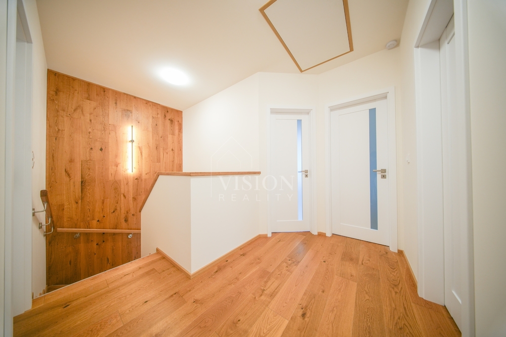 Právě díky nadstandardnímu zateplení a technologiím dům dosahuje nejvyšší energetické efektivity: je postaven z kvalitních keramických tvárnic, zateplen grafitovým polystyrenem a v půdním prostoru je nadstandardních 40 cm minerální vaty. Interiér definuje luxusní provedení v podobě masivních dubových plovoucích podlah v celém domě a interiérových dveří s dřevěným jádrem v nadstandardní výšce 210 cm. Okna a venkovní dveře jsou plastová s izolačními trojskly, přičemž ve fasádě je již připravena elektroinstalace pro venkovní žaluzie i napájecí bod pro budoucí nabíječku na elektromobily.