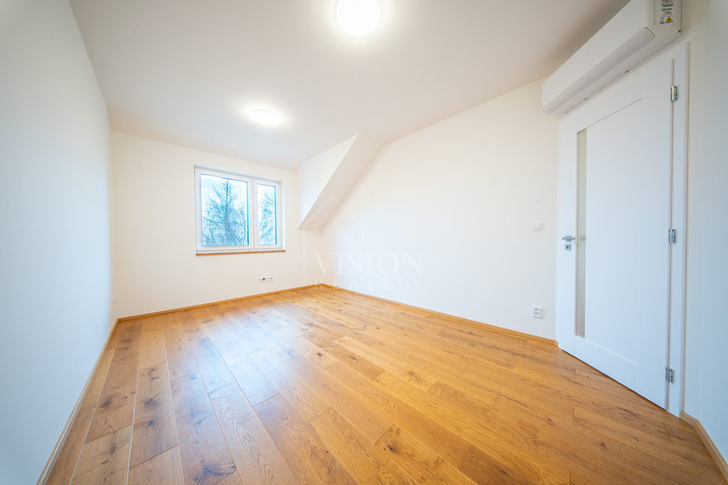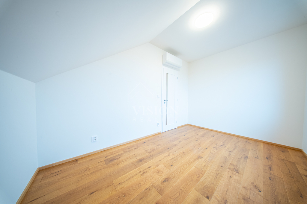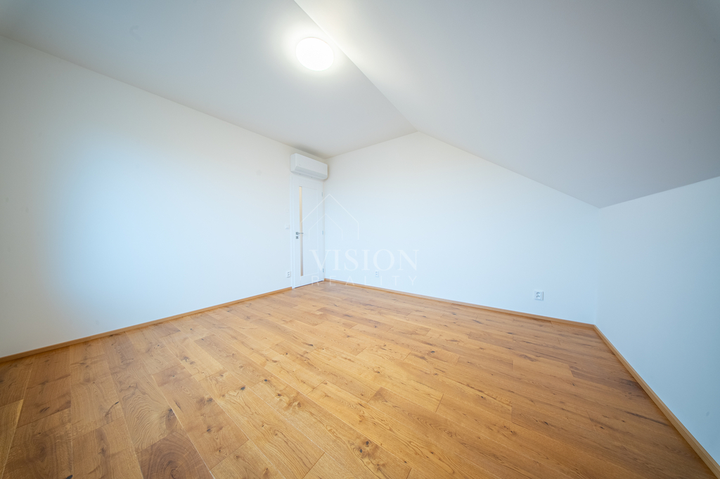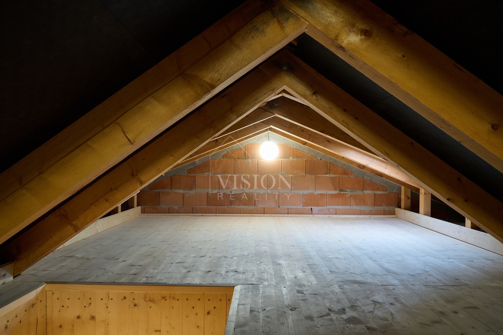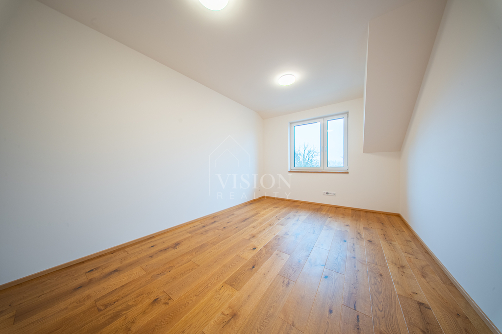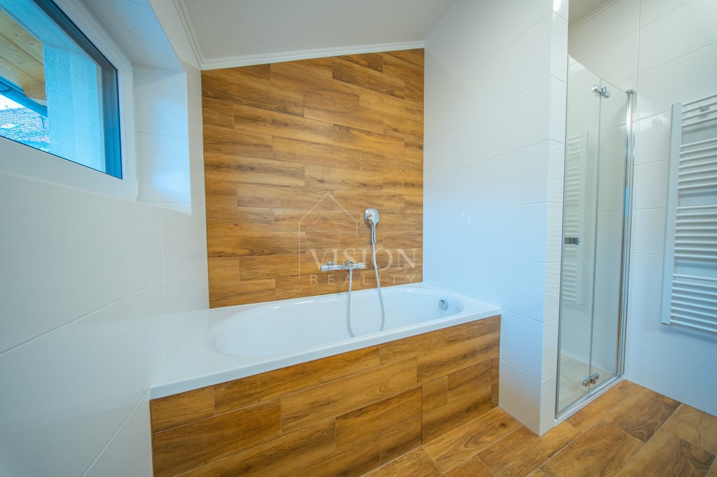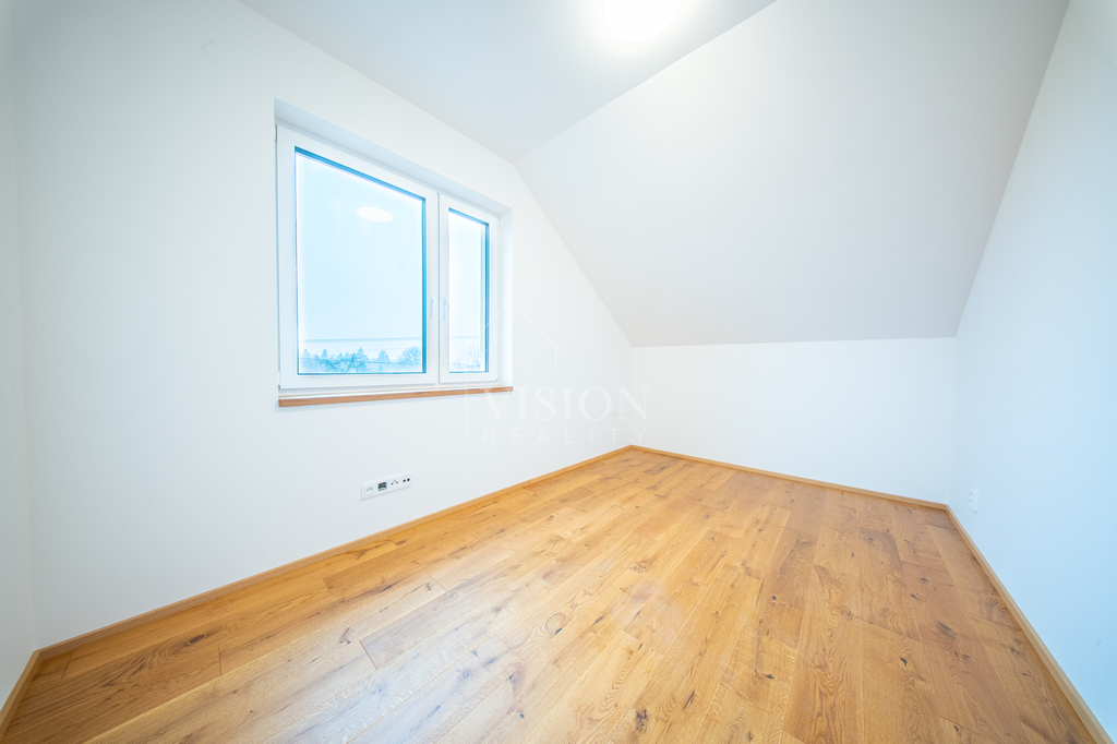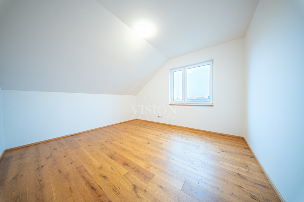 Dům nabízí velkorysých 119 m² užitné plochy. V přízemí najdete skutečné srdce domu – prostorný obývací pokoj s kuchyní a jídelnou o ploše přes 40 m², dále koupelnu a technickou místnost. V patře jsou tři samostatné ložnice (cca 16 m², 16 m² a 11 m²) a druhá koupelna, takže každý člen rodiny tu bude mít své soukromí. Pod střechou se nachází praktická pochozí půda o velikosti cca 40 m², ideální jako úložný prostor. K domu náleží vlastní pozemek o celkové výměře 554 m² (včetně podílu na společných plochách) a soukromé oplocené parkování přímo před domem.
