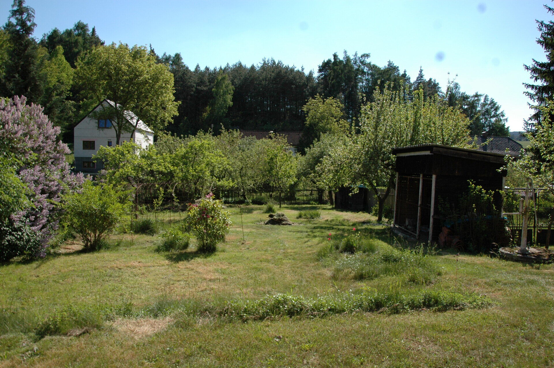 Zahrada je zatravněná, osázena ovocnými stromy, mírně se svažuje JZ směrem, což zajišťuje celodenní sluneční svit. Poskytuje absolutní soukromí a pěkný výhled.